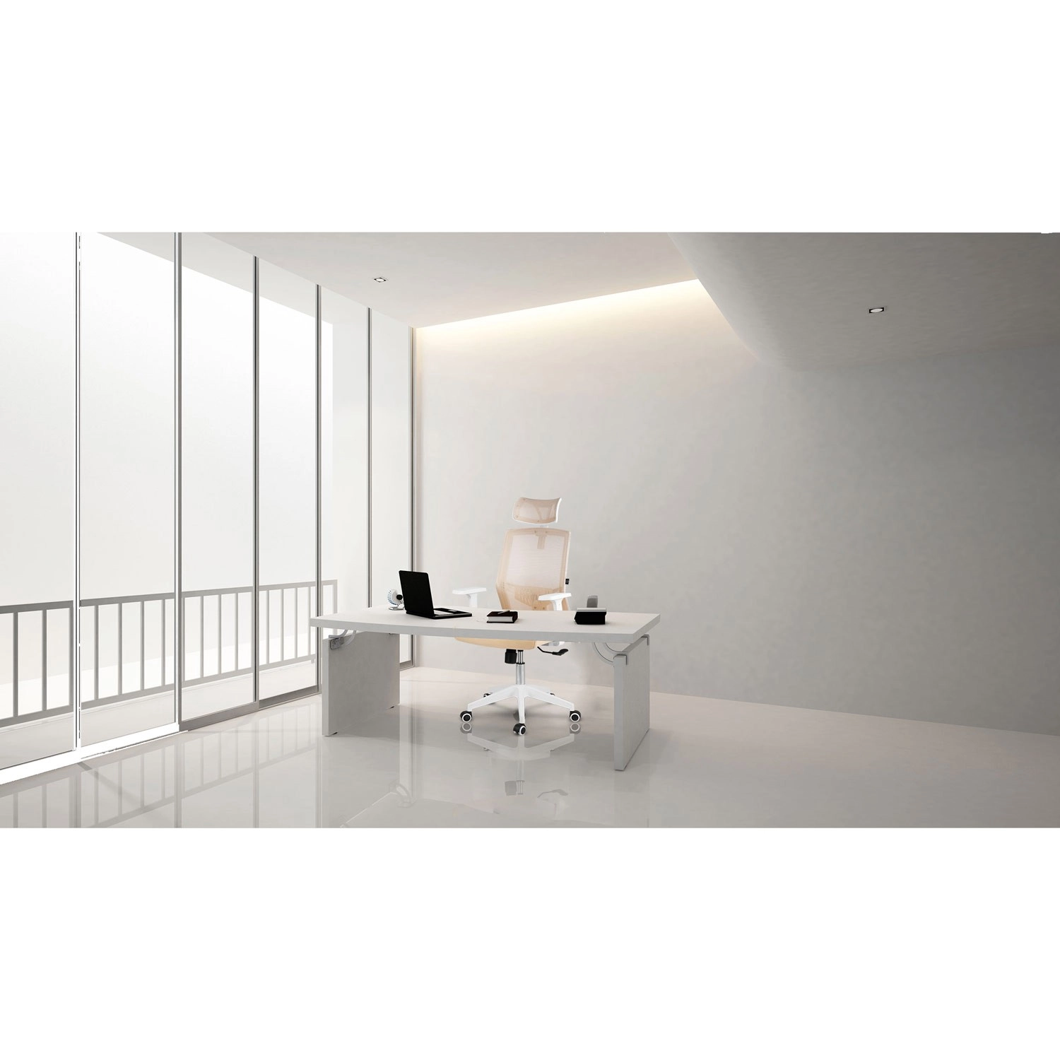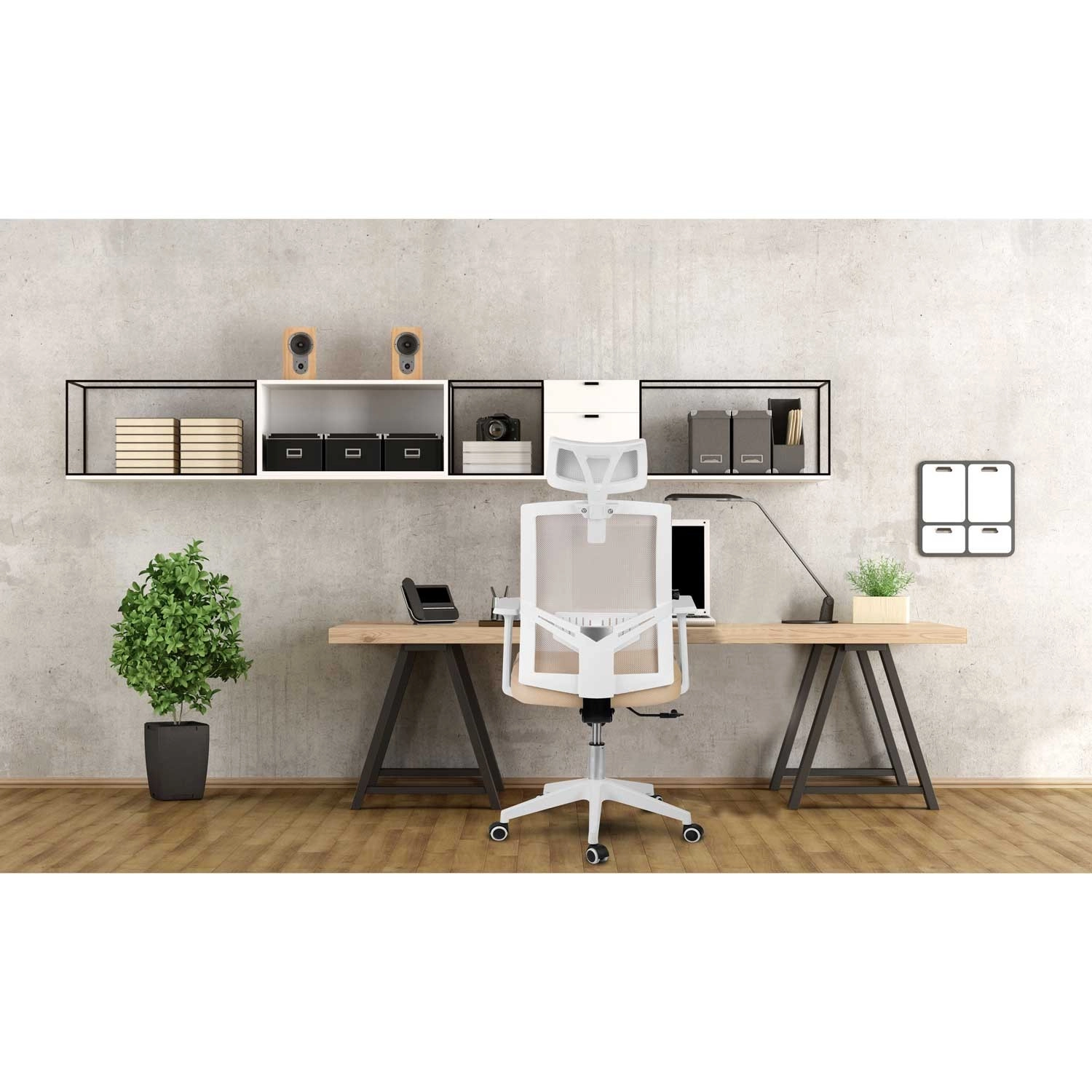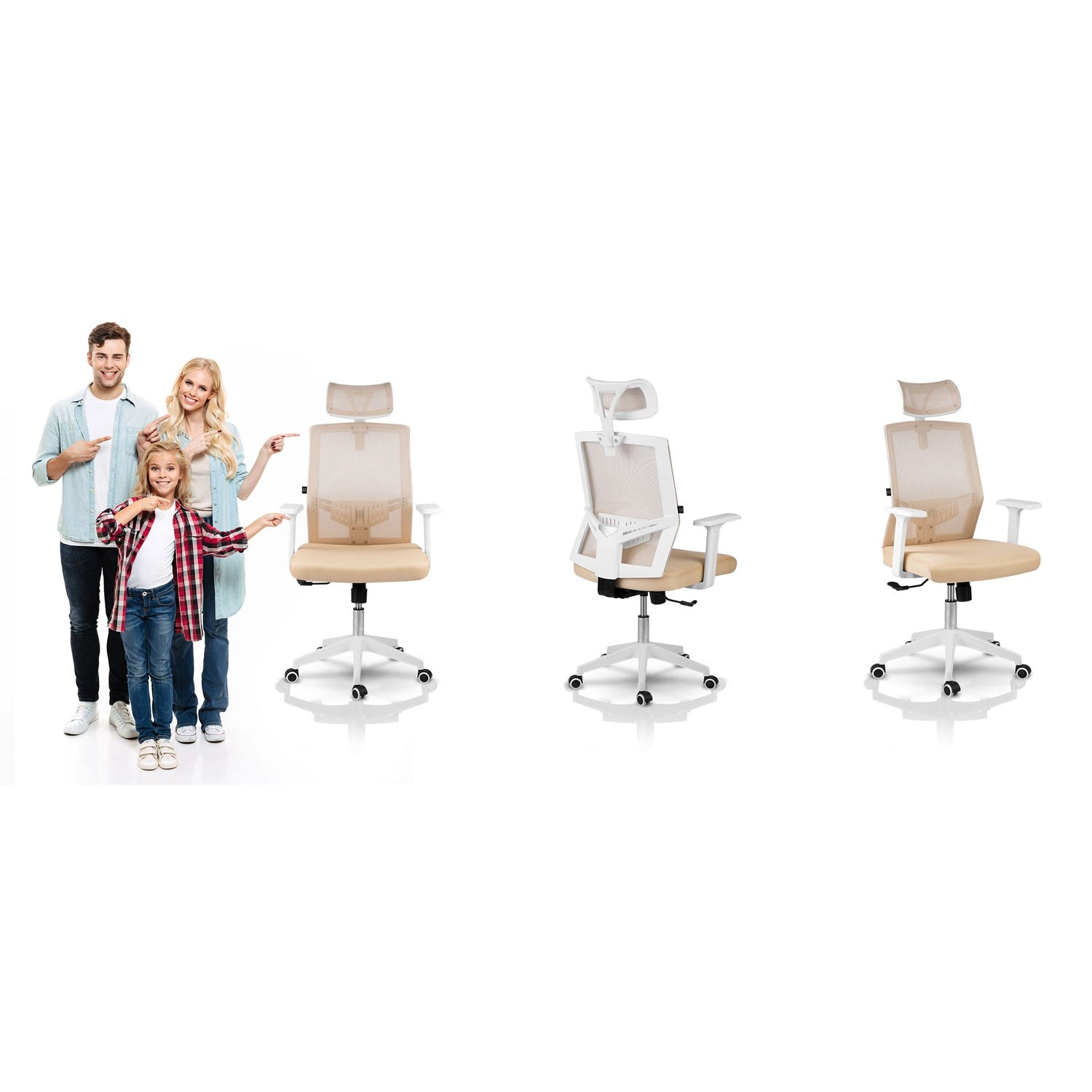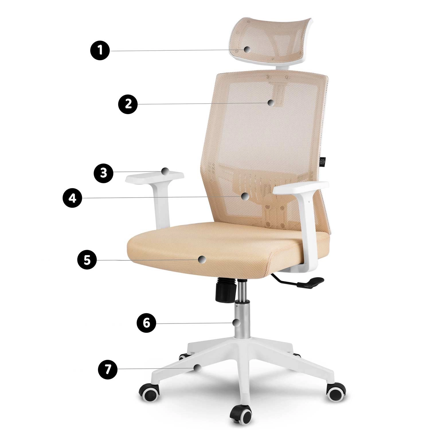 La sedia da ufficio Sofotel Rotar in color beige unisce microrete traspirante, design ergonomico con supporto lombare e poggiatesta regolabile. Offre regolazione continua dell'altezza, meccanismo a dondolo con blocco e ruote silenziose gommate che non graffiano il pavimento.