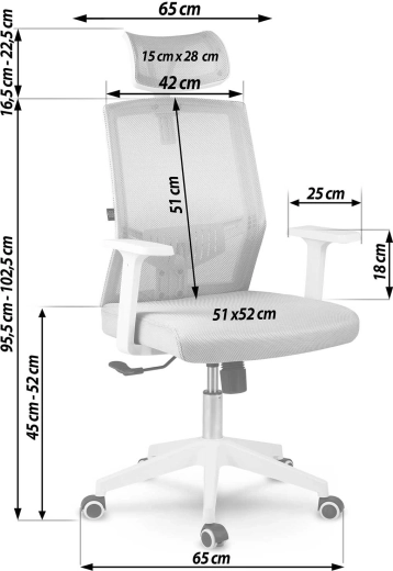 Grazie al pistone a gas a regolazione continua puoi impostare facilmente l’altezza del sedile; il meccanismo a dondolo può rimanere libero per il relax oppure essere bloccato in posizione verticale per il lavoro concentrato. I braccioli resistenti in plastica di qualità aumentano comfort e durata.