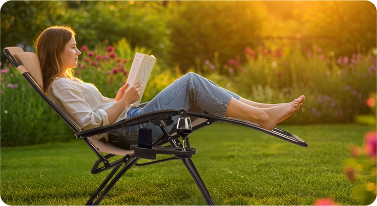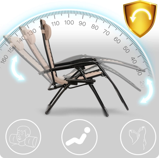 Distenditi in posizione di assenza di gravità, solleva le gambe all’altezza del cuore e allevia schiena e circolazione. Il semplice meccanismo consente di impostare più posizioni per il massimo relax.