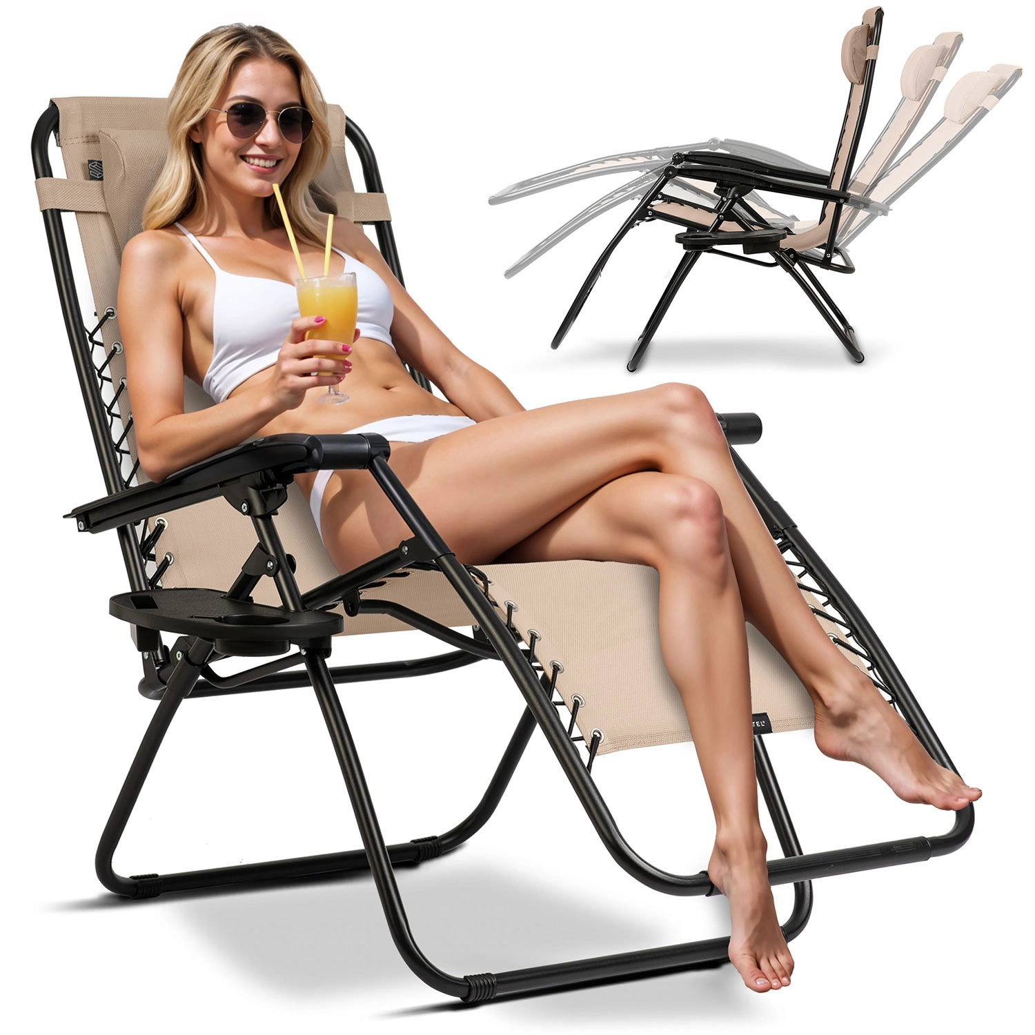 Il pratico tavolino laterale con supporti per bevanda e telefono tiene tutto l’occorrente a portata di mano. La struttura leggera ma robusta si ripiega facilmente e, una volta chiusa, occupa pochissimo spazio: ideale per balcone, terrazza, giardino, a bordo piscina e in campeggio.