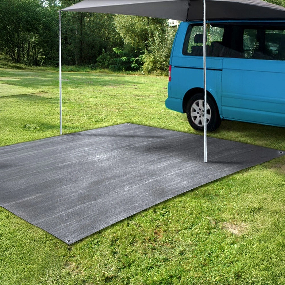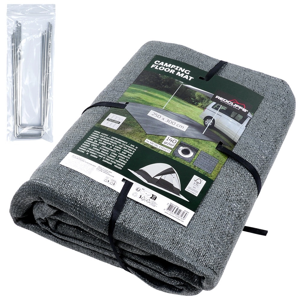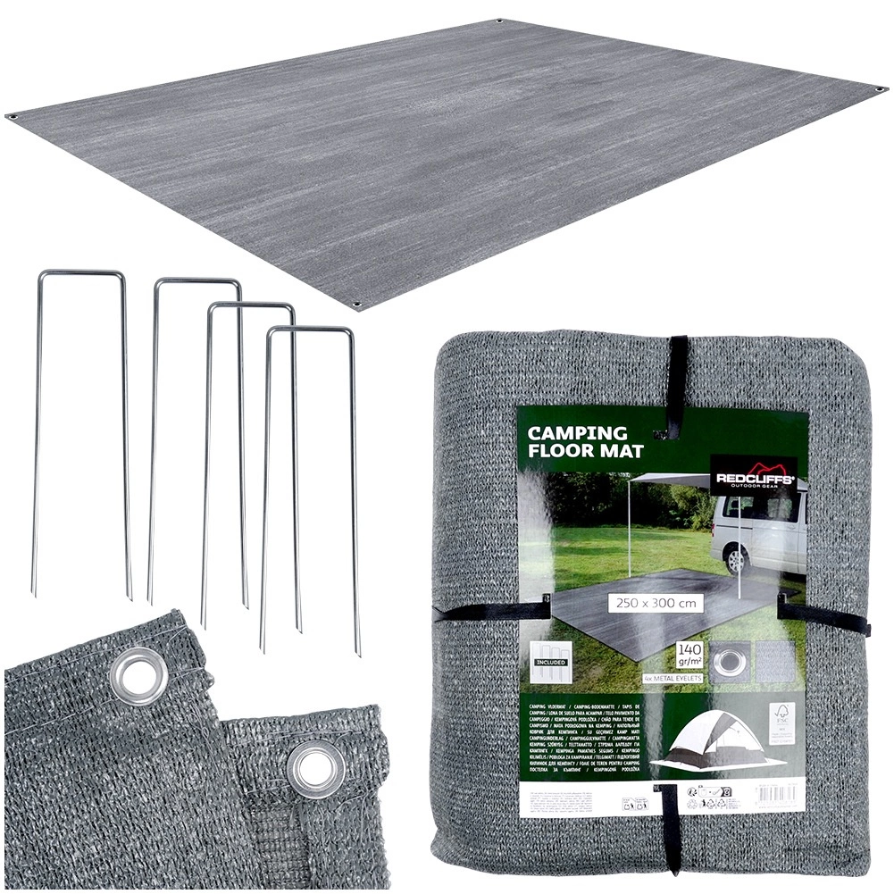 Pratico tappetino da pavimento per tenda e veranda dalle dimensioni 250 × 300 cm che garantisce durante il campeggio pulizia, asciutto e maggiore comfort. Realizzato in tessuto a rete resistente e facile da pulire di colore grigio, dispone di occhielli metallici per l’ancoraggio e nella confezione trovi anche 4 picchetti per un fissaggio stabile. Adatto anche sotto la veranda del camper, in gazebo, in spiaggia o per picnic.