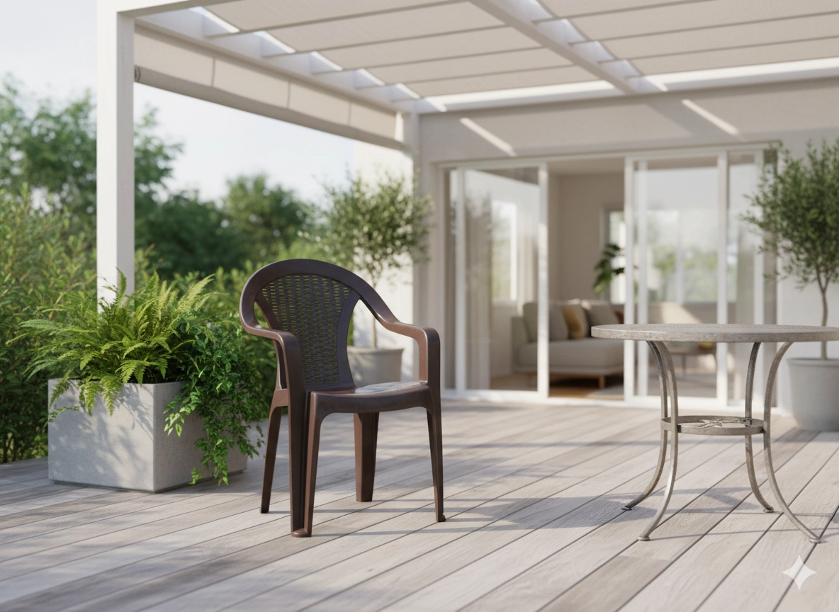 Crea un angolo accogliente in giardino, terrazza o balcone. Questa sedia in plastica marrone combina design classico con materiali durevoli e comfort quotidiano. Grazie alla solida struttura a quattro gambe è stabile, ma rimane leggera e facile da spostare.