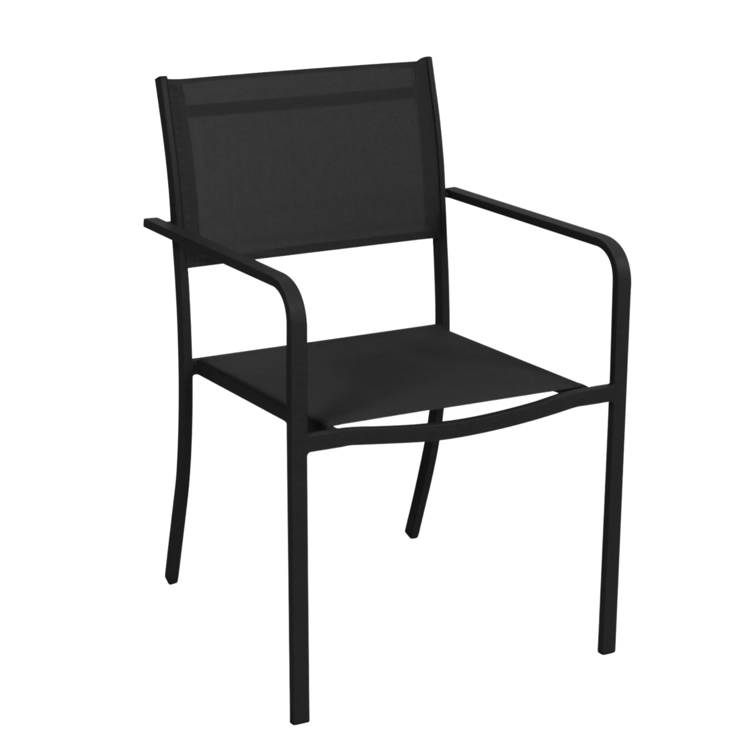 Cerchi una sedia versatile per terrazza o giardino che duri nel tempo? Questa sedia da giardino nera con robusto telaio in acciaio e intreccio in tessilene offre comfort di seduta e manutenzione semplice. Le linee moderne e sottili si adattano perfettamente a qualsiasi spazio esterno.