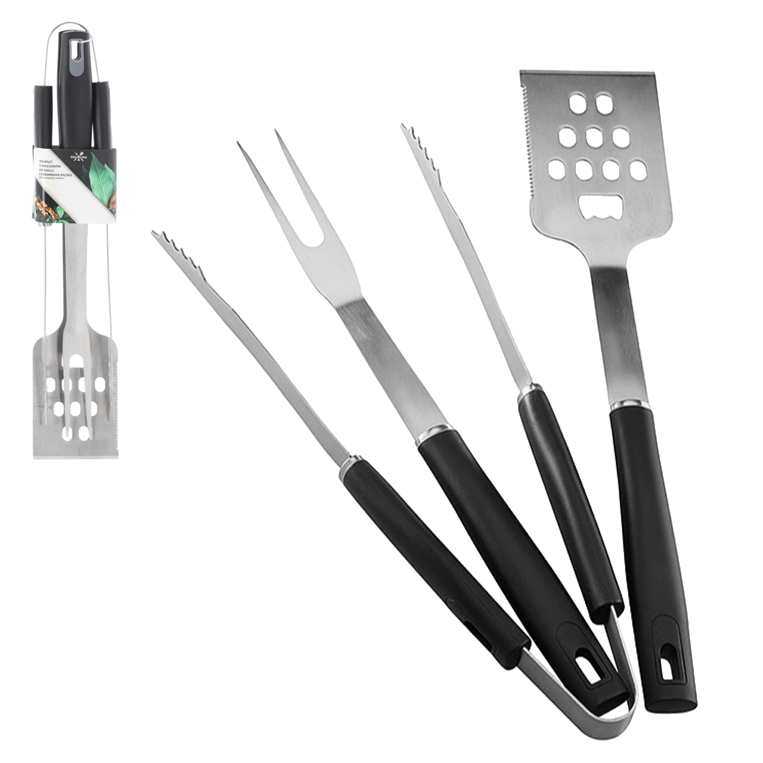 Perfeziona le tue grigliate con un set di tre utensili essenziali che unisce stile classico e funzionalità. I manici in legno assicurano una presa salda e comfort termico, mentre le parti operative in acciaio inox sono robuste, resistenti alla corrosione e facili da pulire.