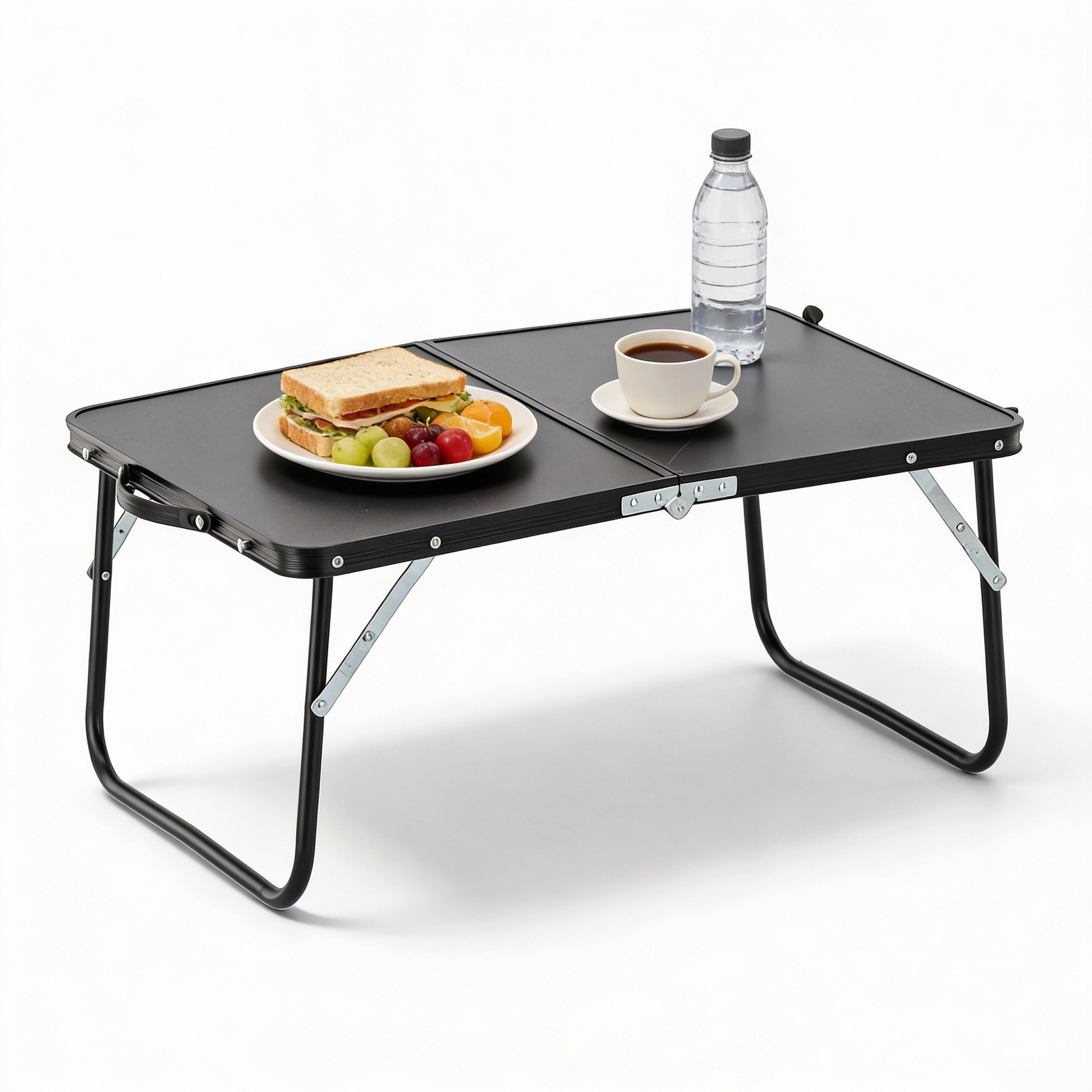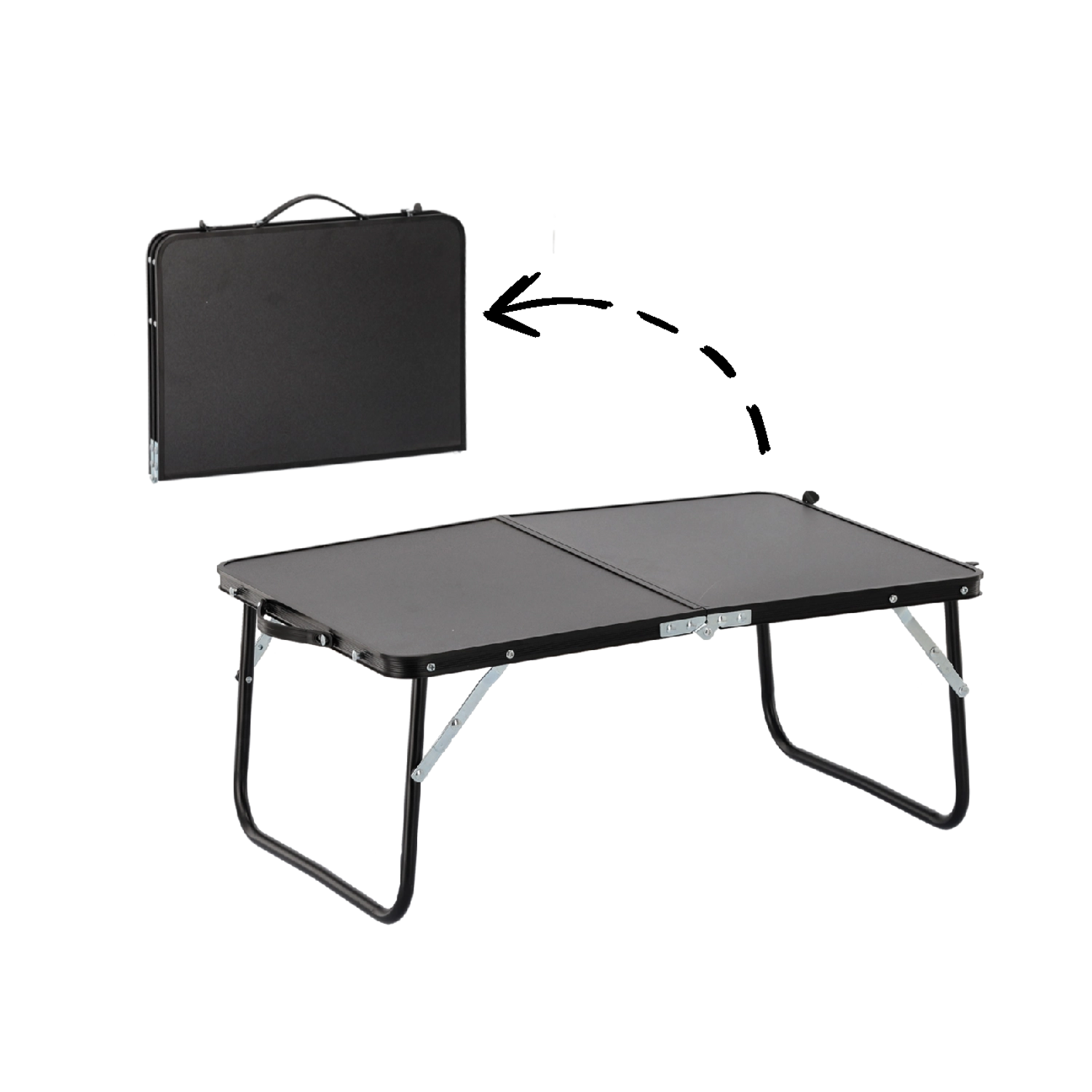 Tavolino pieghevole leggero e compatto per campeggio e picnic, che entra quasi ovunque. Da chiuso è alto solo 4 cm e pesa appena 1,2 kg. Il piano in MDF stabile e le gambe in acciaio garantiscono solidità anche su superfici irregolari – ideale per viaggi, campeggio, spiaggia e balcone.