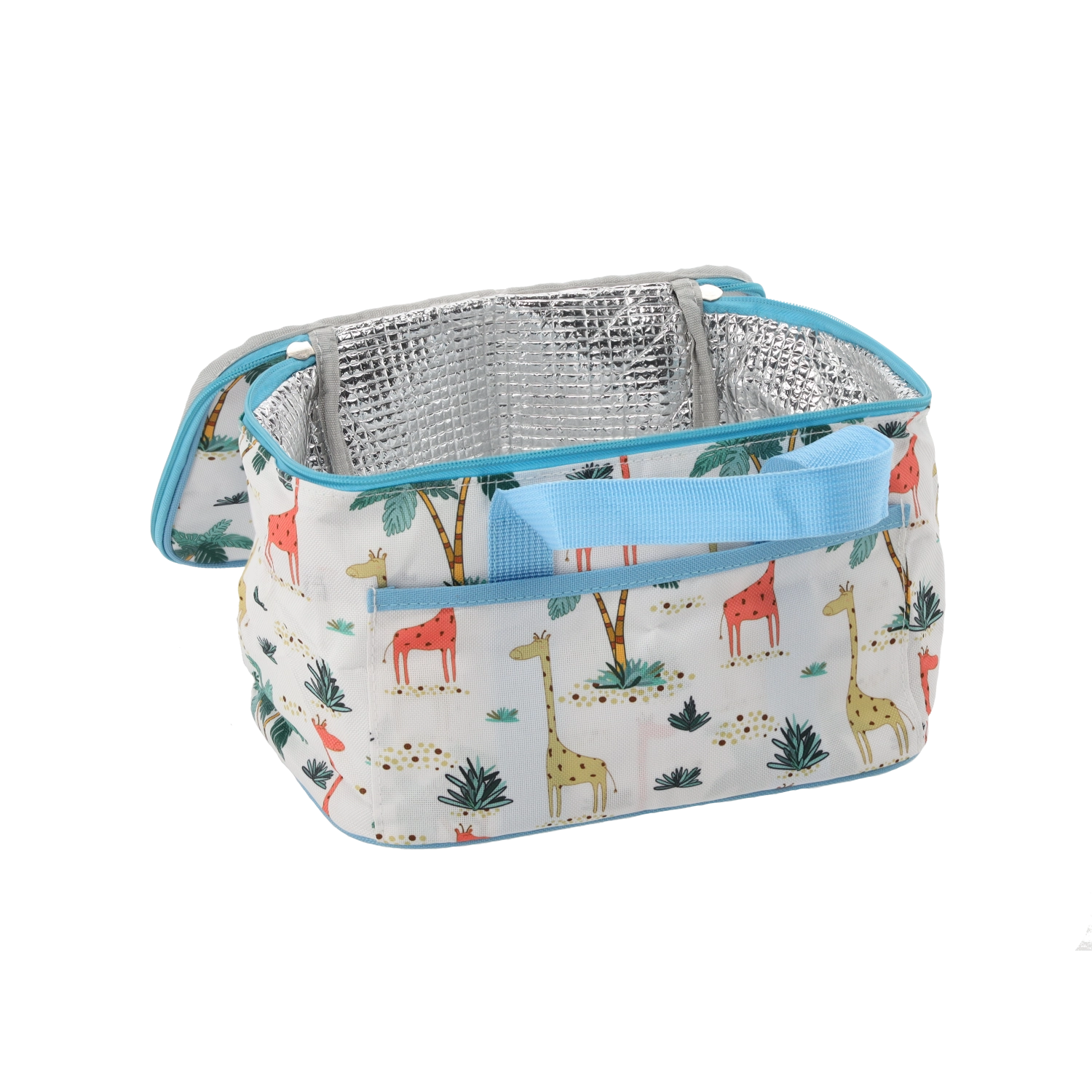Il foglio di alluminio interno riflette la temperatura e, insieme alla schiuma PE, mantiene il contenuto più a lungo freddo o caldo. La borsa ha una chiusura a zip, una pratica tasca frontale e manici robusti per un trasporto confortevole a picnic, in ufficio o in gita.