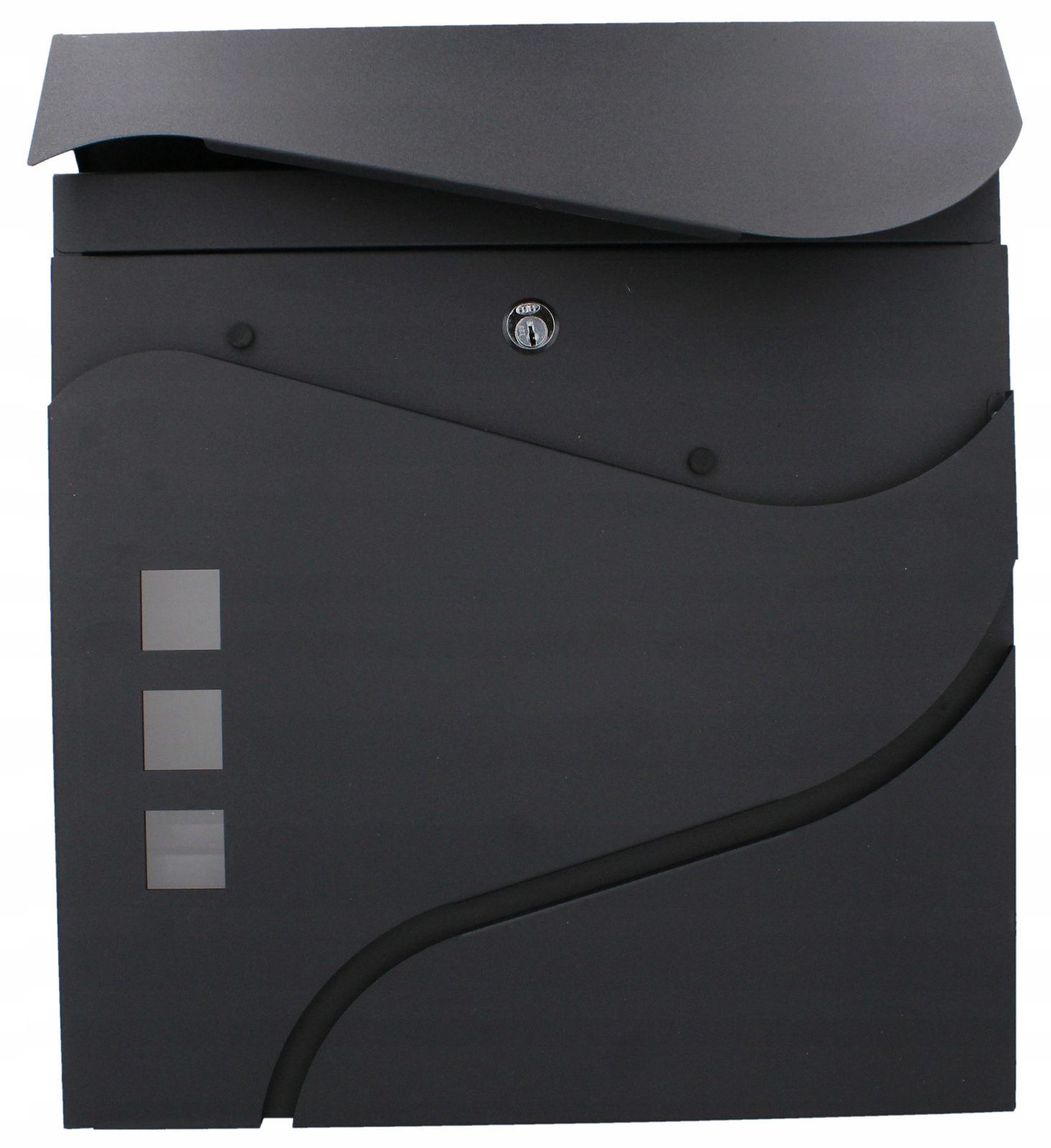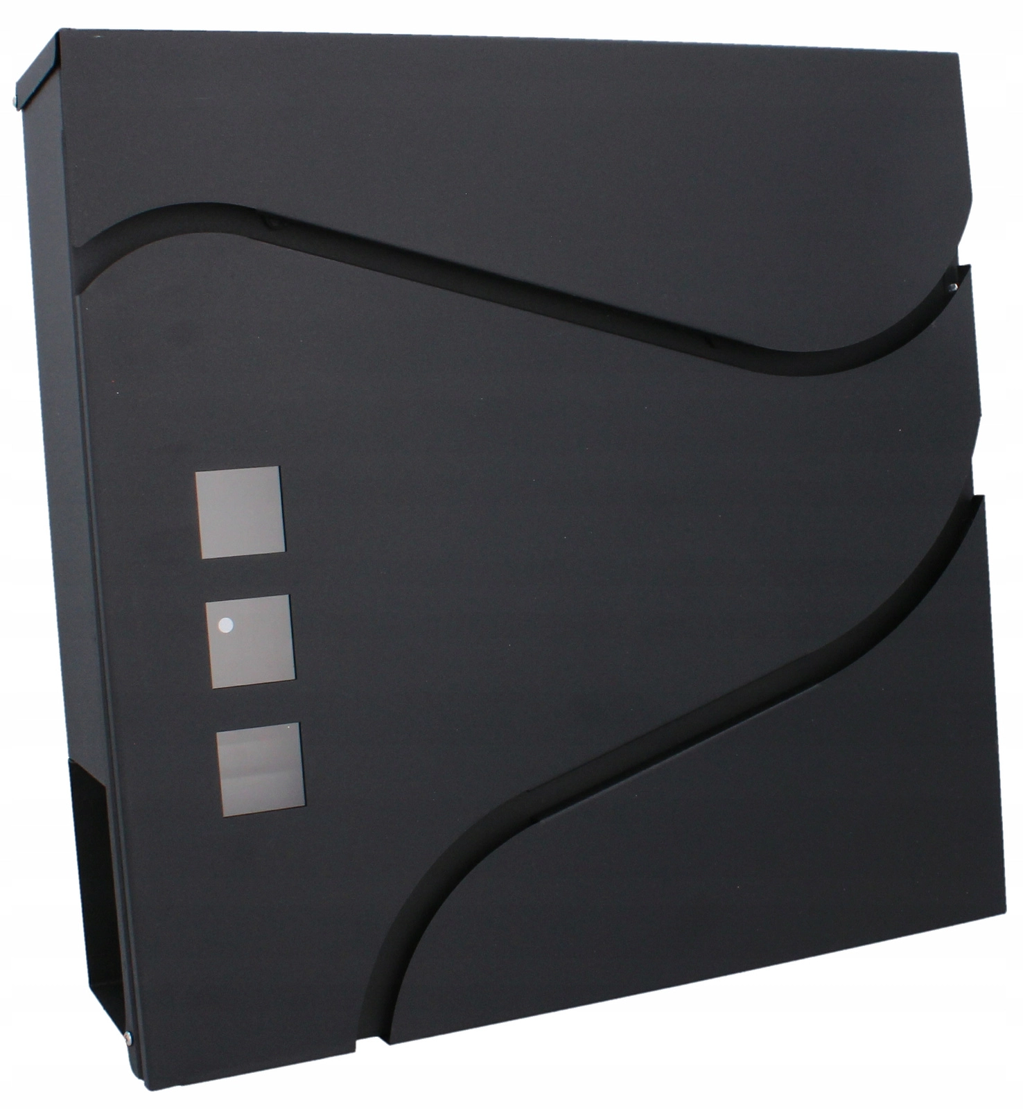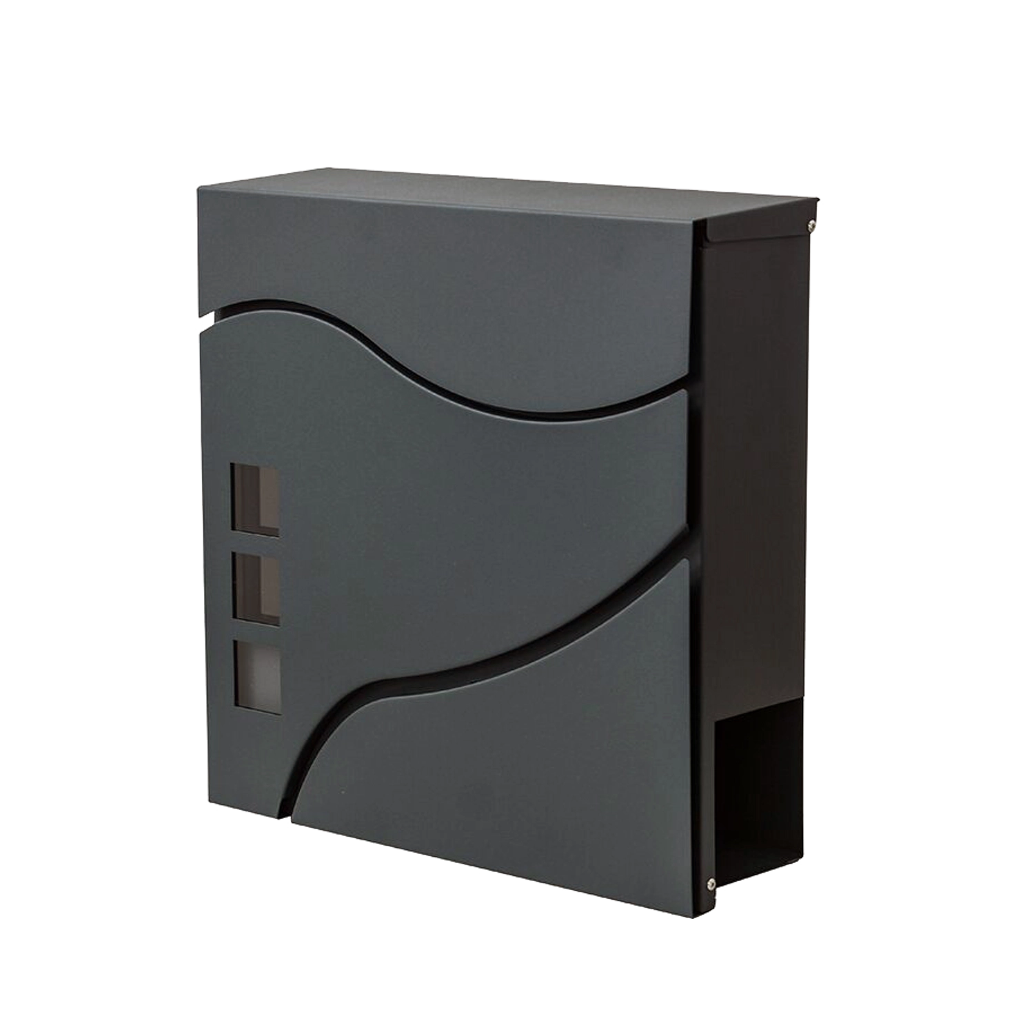 Il design minimalista ed elegante con linee morbide e tre finestre completa le facciate moderne. Un pratico vano portagiornali laterale o inferiore (a seconda della variante) consente di riporre separatamente la stampa. Il montaggio a parete è rapido grazie ai fori preforati.