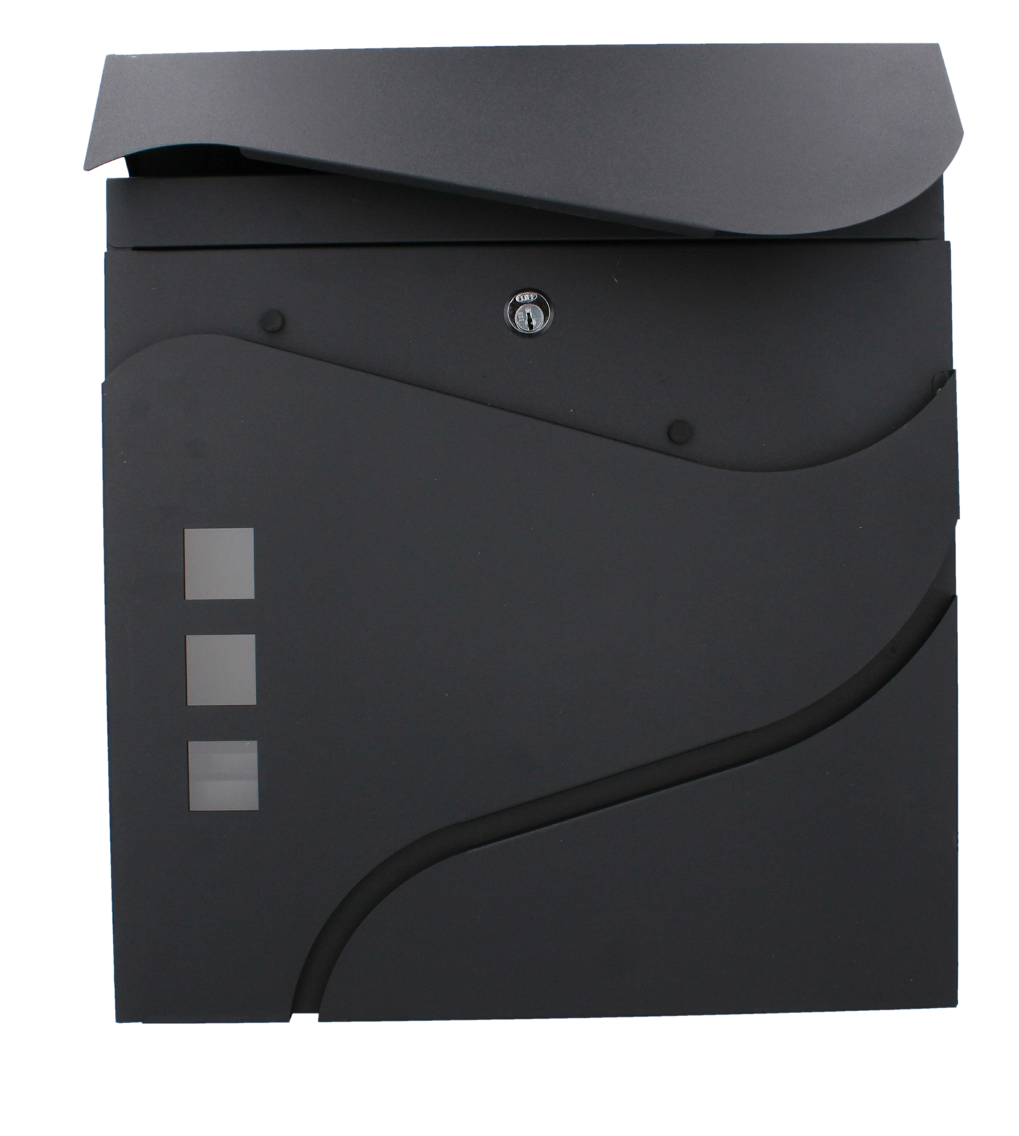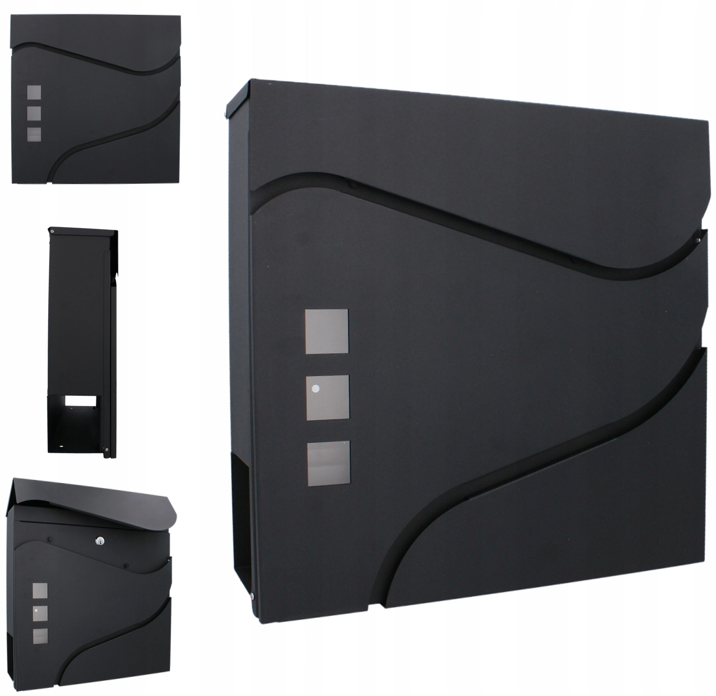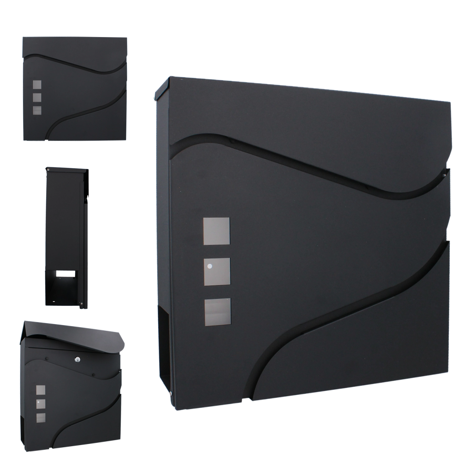 Il design minimalista ed elegante con linee morbide e tre finestre completa le facciate moderne. Un pratico vano portagiornali laterale o inferiore (a seconda della variante) consente di riporre separatamente la stampa. Il montaggio a parete è rapido grazie ai fori preforati.