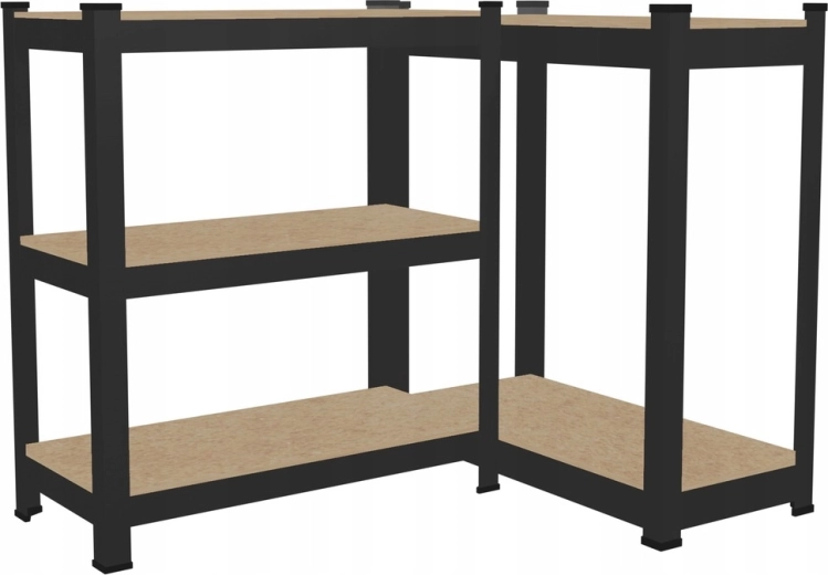 I profili in acciaio zincato e i ripiani in HDF garantiscono una lunga durata. La finitura nera ha un aspetto moderno e si adatta a garage, officina e ambienti domestici.