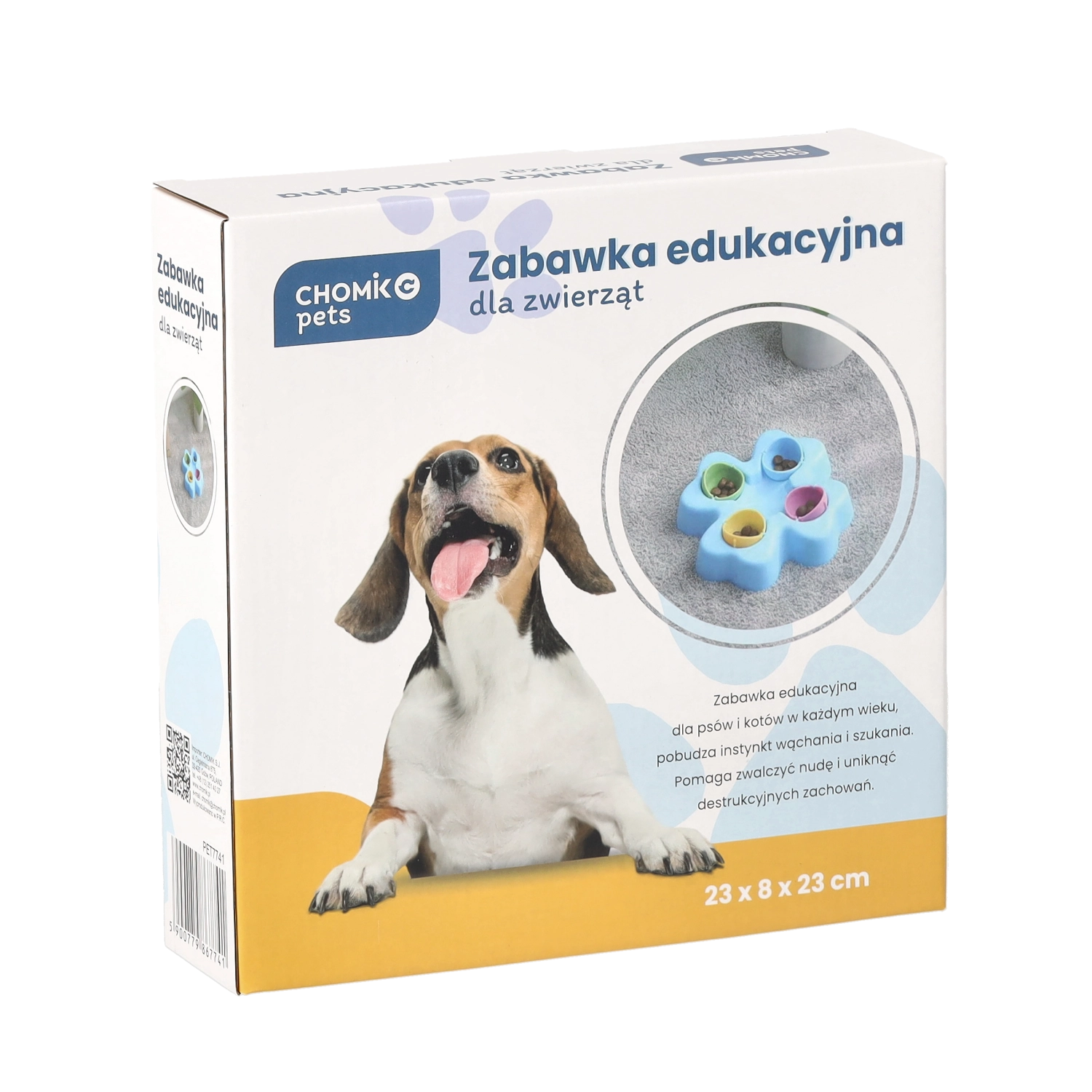 Un rompicapo interattivo con vasetti colorati che trasforma il pasto o la ricompensa in una sfida divertente. L’animale fa scorrere, solleva o ruota i singoli coperchi per raggiungere gli snack: rallenta l’ingestione, intrattiene e rafforza la concentrazione. La base in plastica resistente è facile da mantenere e i bordi lisci garantiscono un uso sicuro.