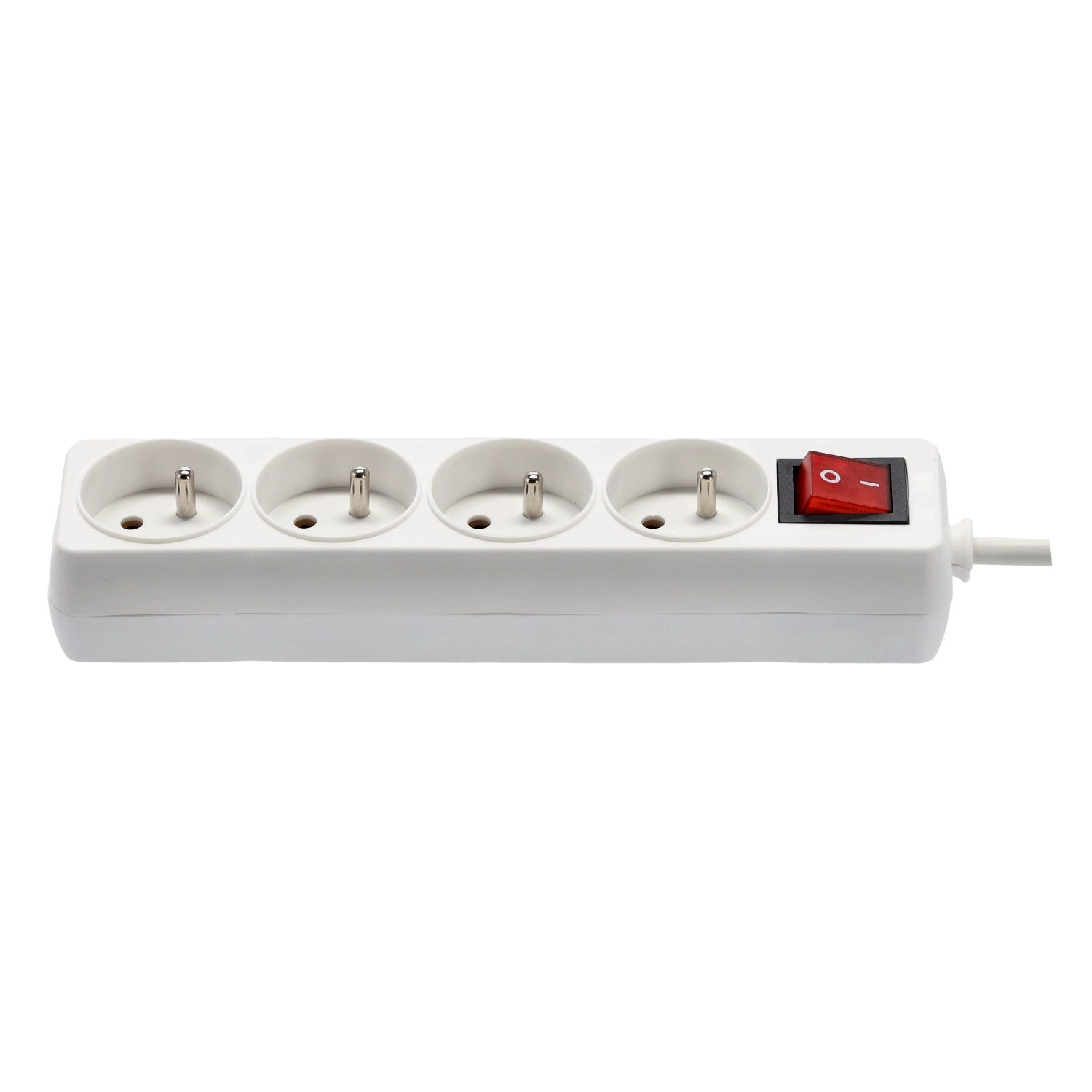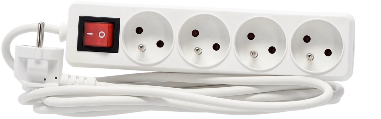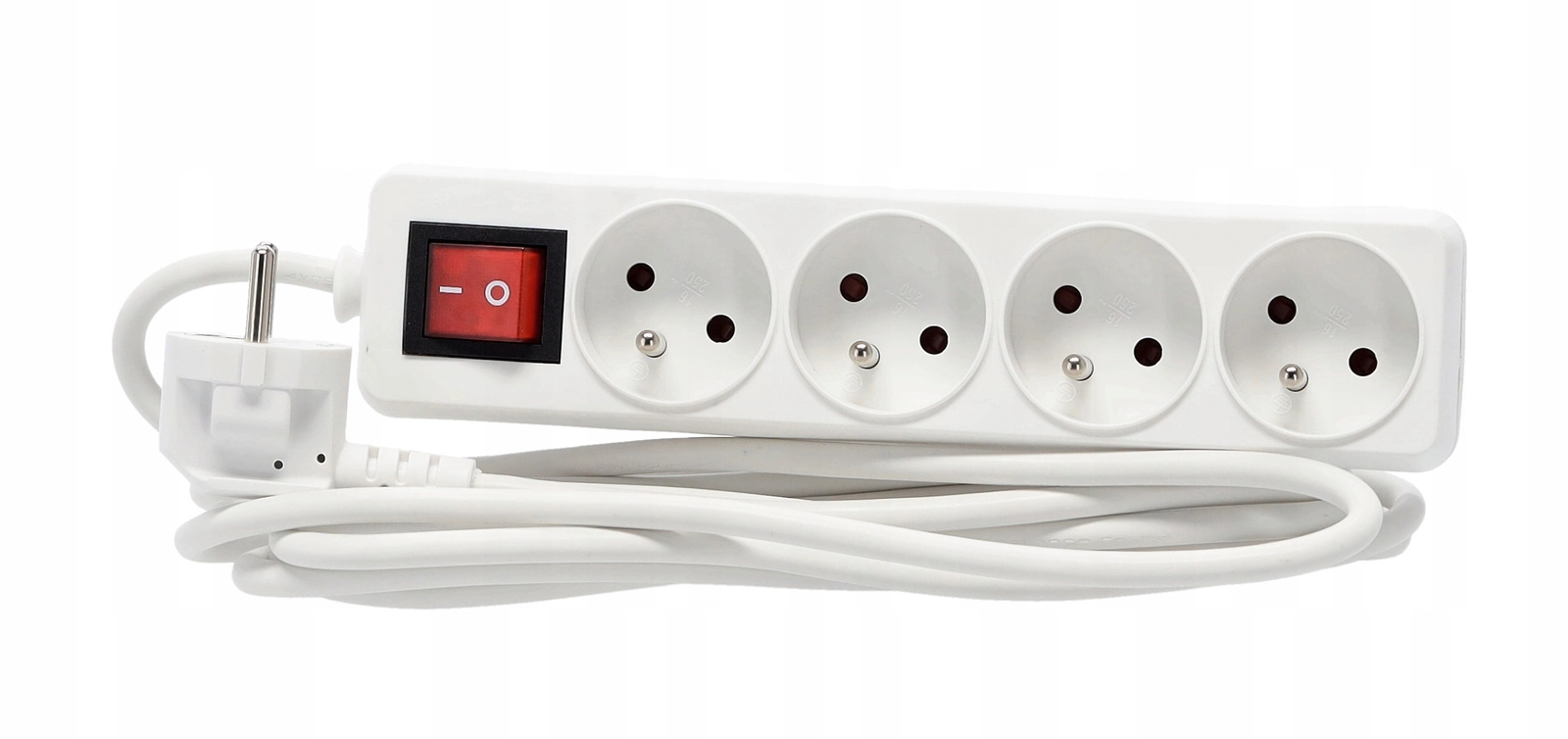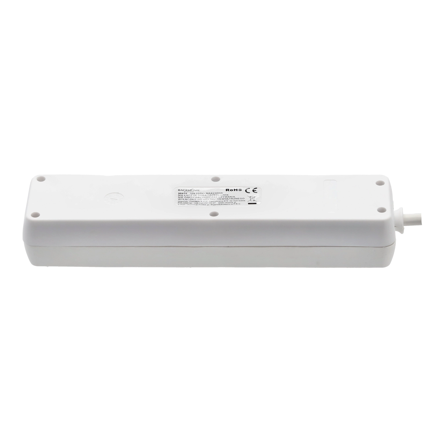 Pratica multipresa bianca con 4 prese, cavo in rame da 3 m e interruttore principale illuminato per un controllo sicuro e comodo dell’alimentazione di più dispositivi contemporaneamente. Offre una struttura robusta, protezione bambini e parametri affidabili per casa e ufficio.