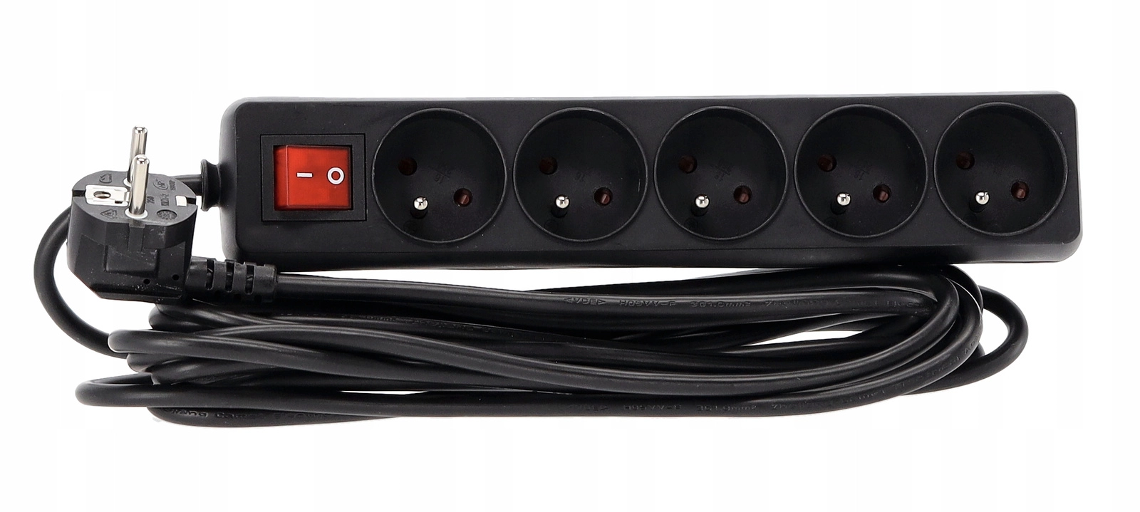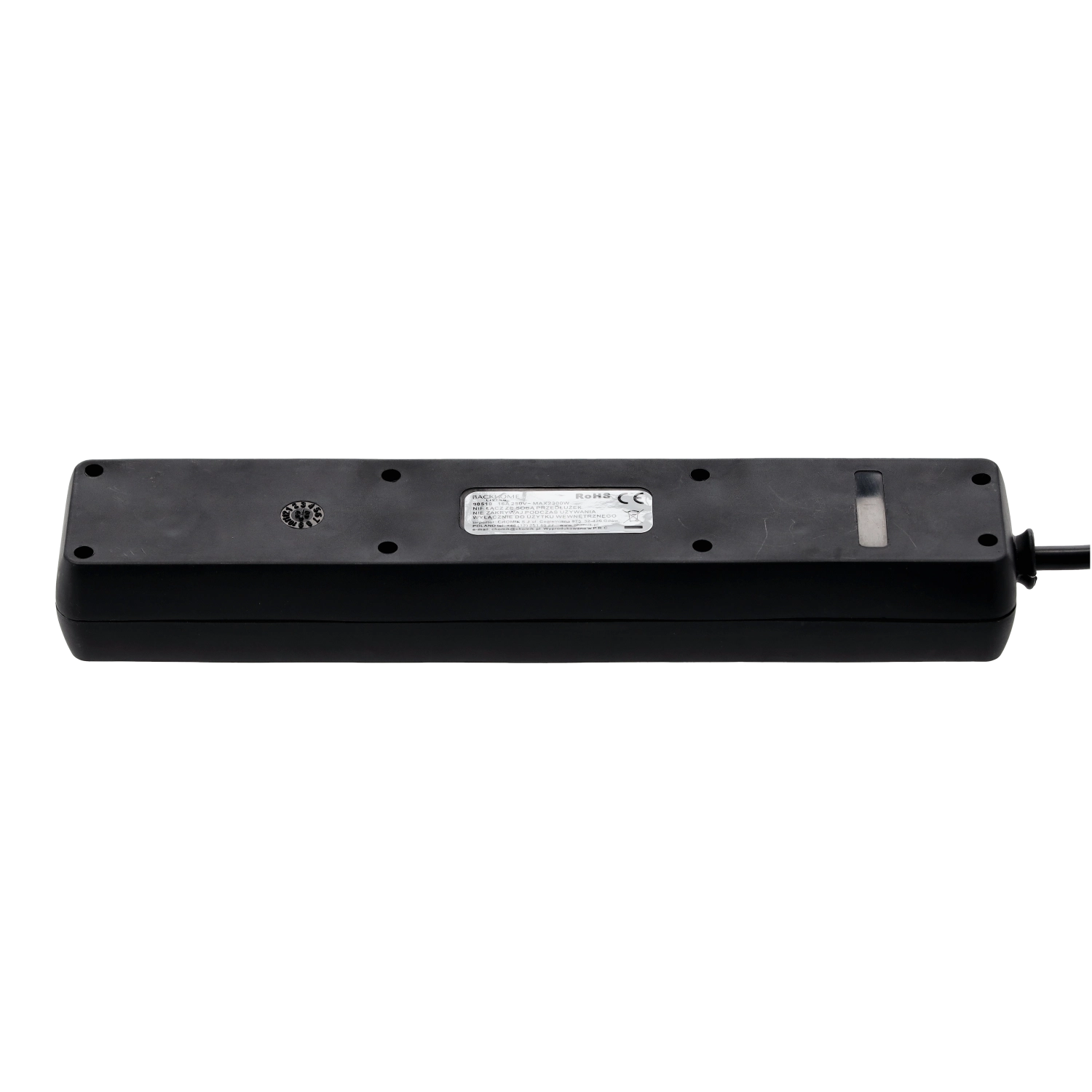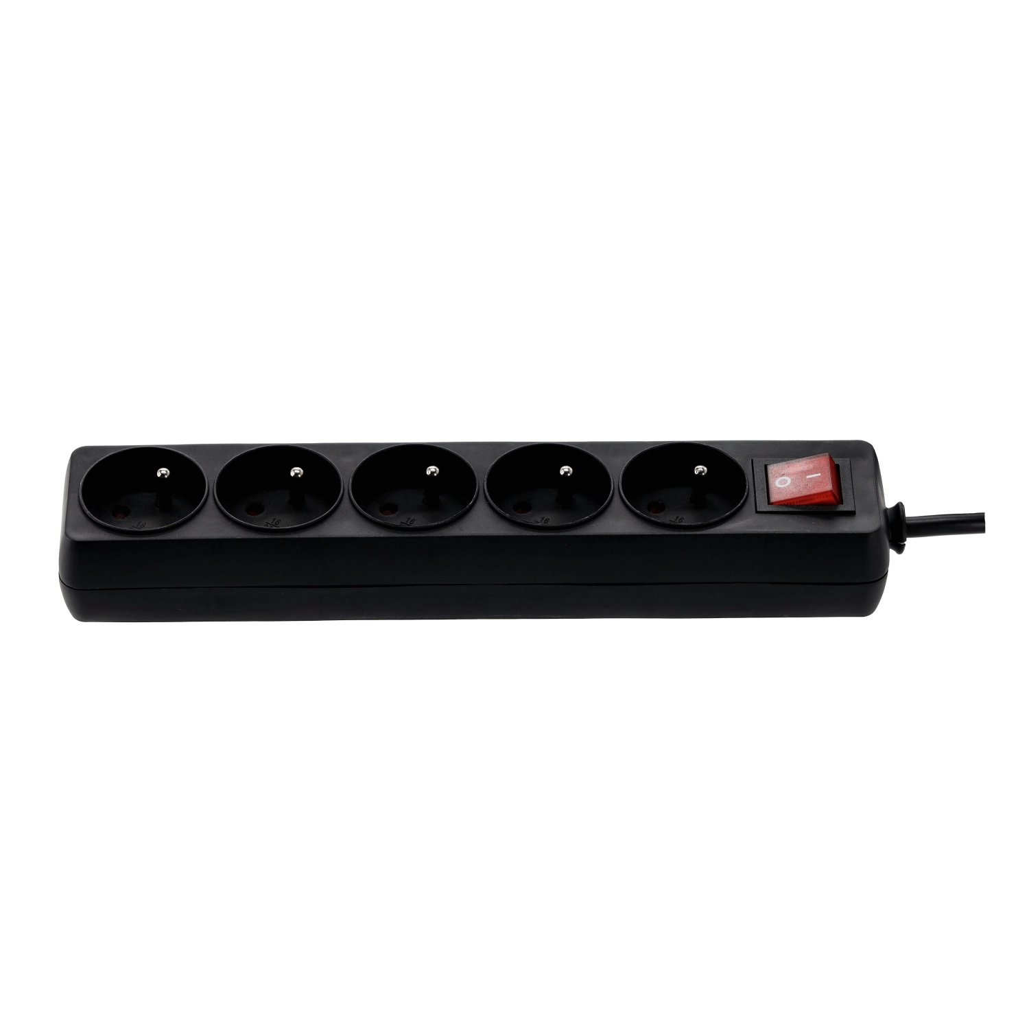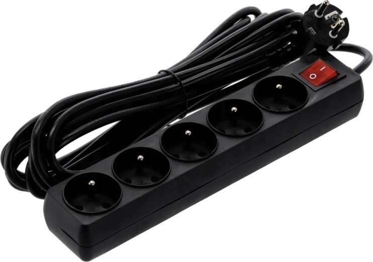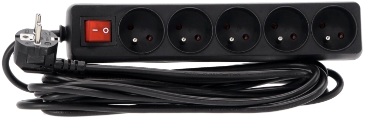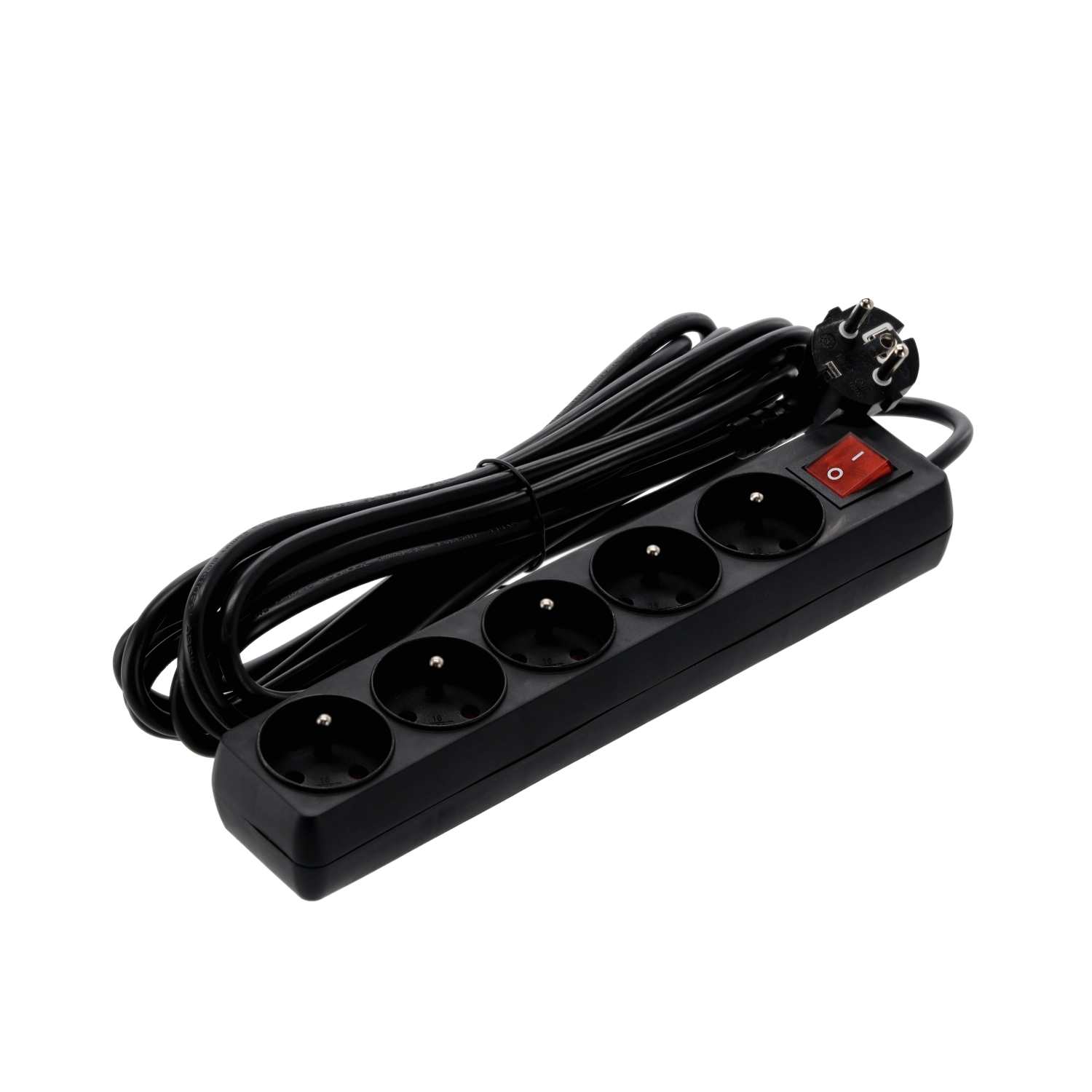 Questa multipresa offre cinque prese con messa a terra per collegare più apparecchi contemporaneamente e un interruttore principale retroilluminato per una rapida disconnessione dalla rete. Il lungo cavo in rame da 5 metri 3×1,0 mm² assicura flessibilità di posizionamento senza bisogno di ulteriori prolunghe.
