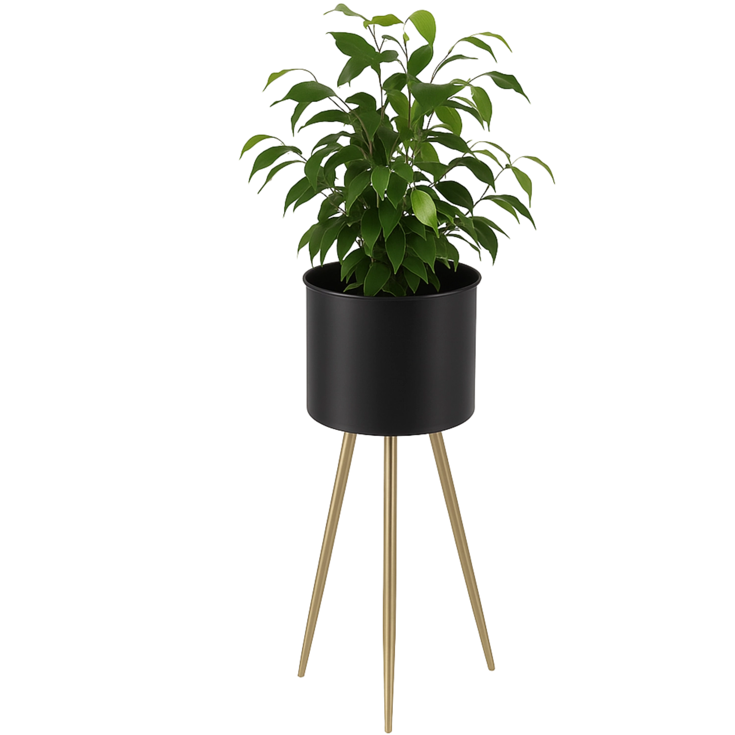 Dai alle tue piante lo spazio per risaltare. Questo elegante supporto combina la finitura nera opaca con gambe dorate lucide, creando un contrasto accattivante che ravviva qualsiasi ambiente. La forma minimalista si integra facilmente con arredi moderni e classici, valorizzando la naturale bellezza delle tue piante.