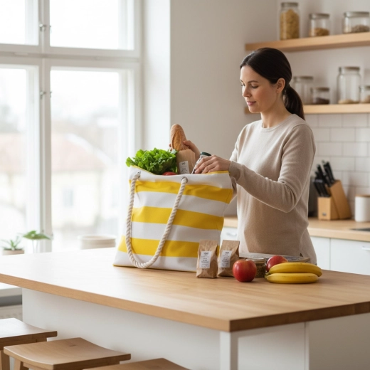 Le dimensioni 48 × 36 cm ospitano asciugamano, crema solare, rivista e una bottiglia d’acqua. Alcuni modelli dispongono di tasca interna e bottone a pressione per una migliore organizzazione.