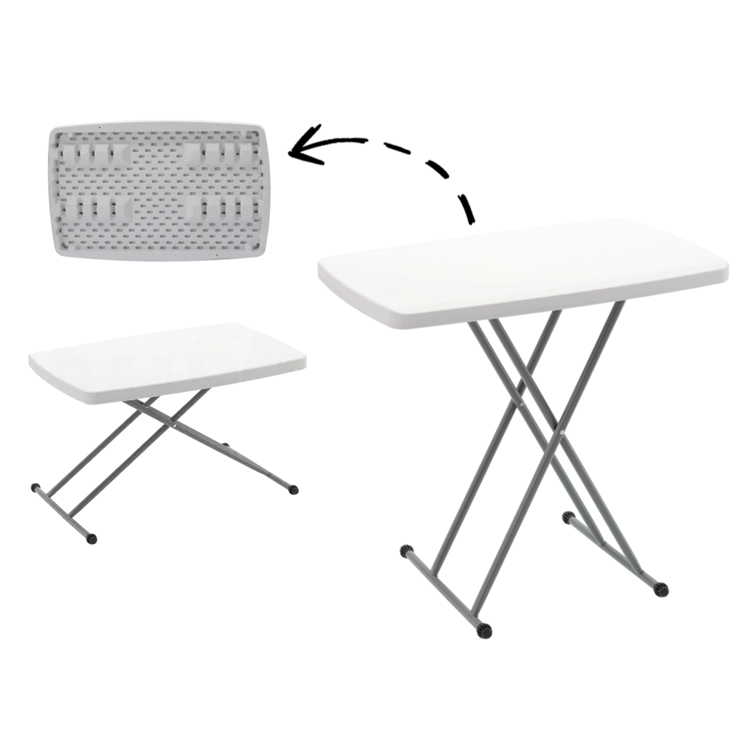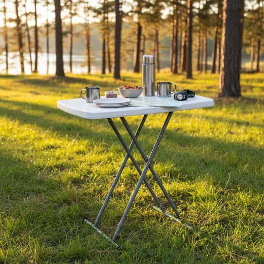 Grazie alla chiusura rapida è ideale per campeggio, viaggi in camper, sedute in giardino e uso domestico come tavolino ausiliario o piano di lavoro. Il piano bianco resistente si pulisce facilmente e si adatta perfettamente sia agli interni che agli esterni.