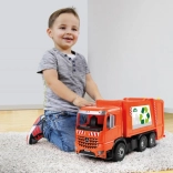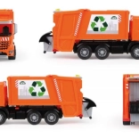 Carico, ribaltamento e raccolta dei rifiuti come nella realtà: con due bidoni i bambini possono facilmente giocare alla raccolta differenziata e al riciclo.