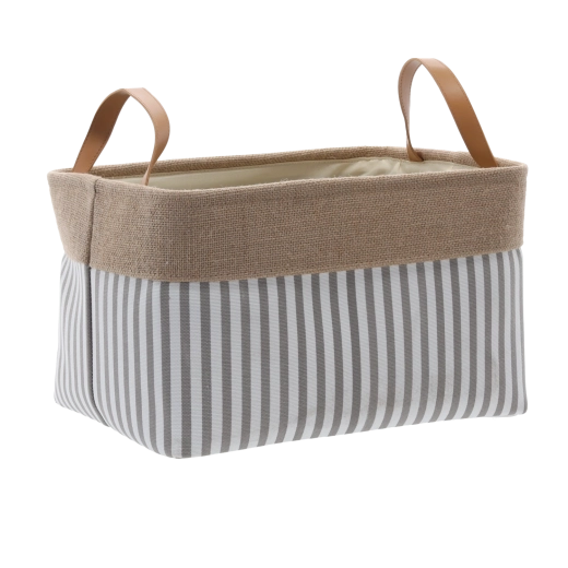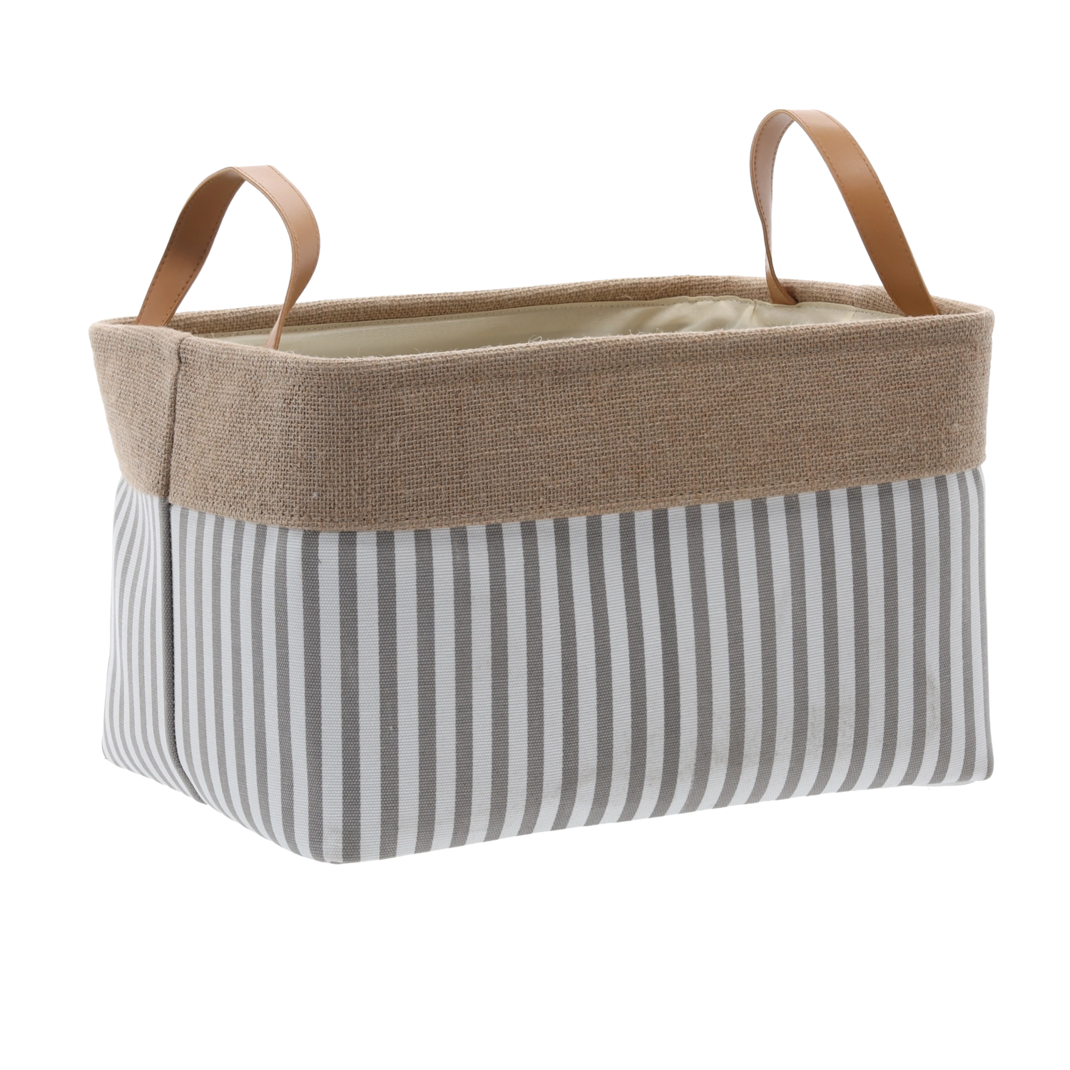 Mantieni l’ordine in casa con stile. Questo cesto portaoggetti in tessuto, con dimensioni 30 × 40 × 24 cm, offre spazio versatile per organizzare gli oggetti quotidiani: dalla biancheria e i giocattoli ai libri e agli accessori da bagno. Il motivo a righe neutro con dettagli beige si abbina alla maggior parte degli arredi.