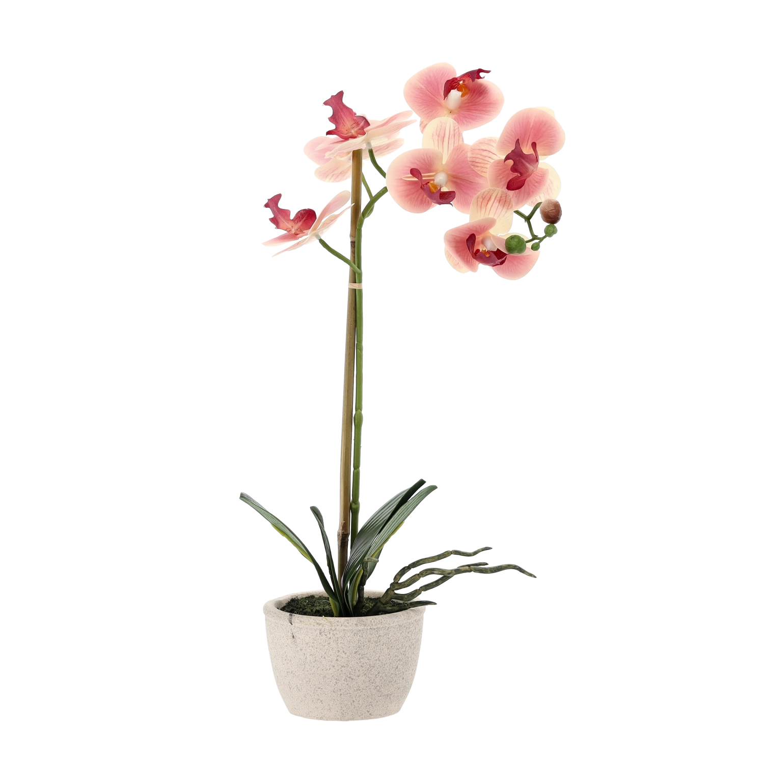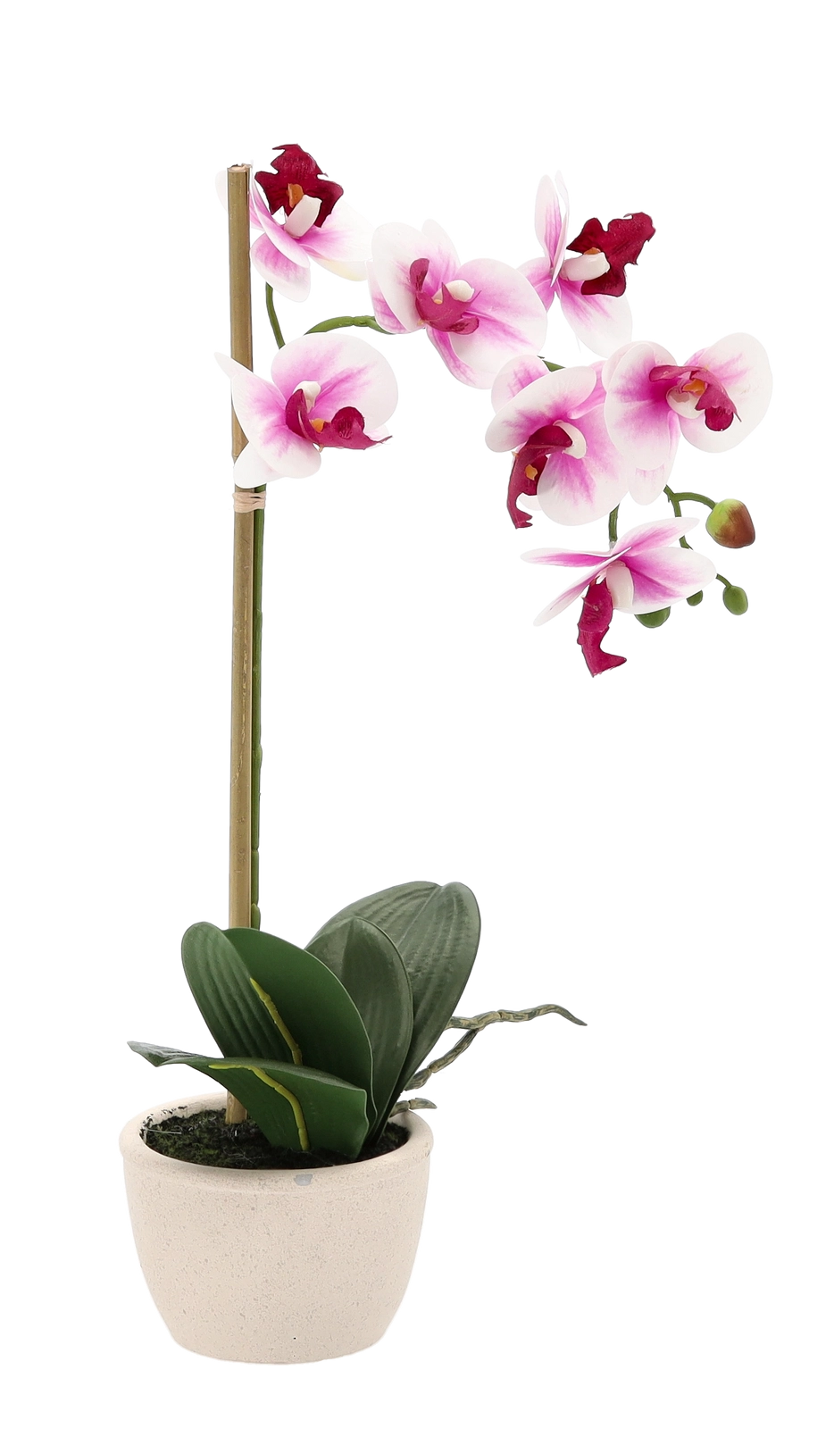 Porta a casa tua la freschezza dei fiori senza pensieri. Questa orchidea artificiale riproduce fedelmente la pianta vera – dai delicati petali e boccioli alle foglie di un verde intenso. Grazie alle dimensioni compatte è ideale per davanzali, mensole, tavolini da salotto o reception.