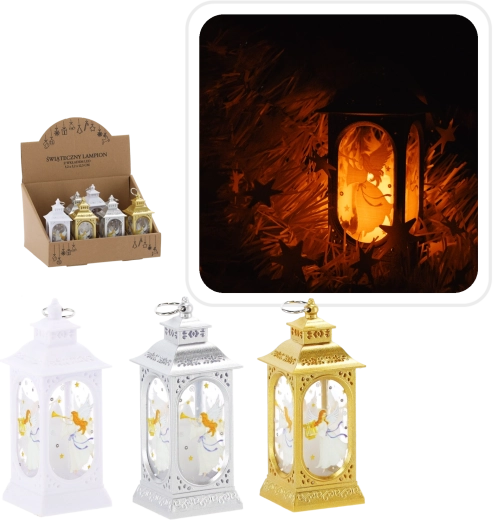 Elegante lanterna natalizia con motivo dell’angelo che illumina la tua casa con una luce calda. Le dimensioni compatte e il LED a risparmio energetico garantiscono una lunga durata, mentre il design discreto in argento, oro o bianco si adatta a qualsiasi interno. Alimentazione con batteria CR2032 sicura, senza bisogno di cavi.