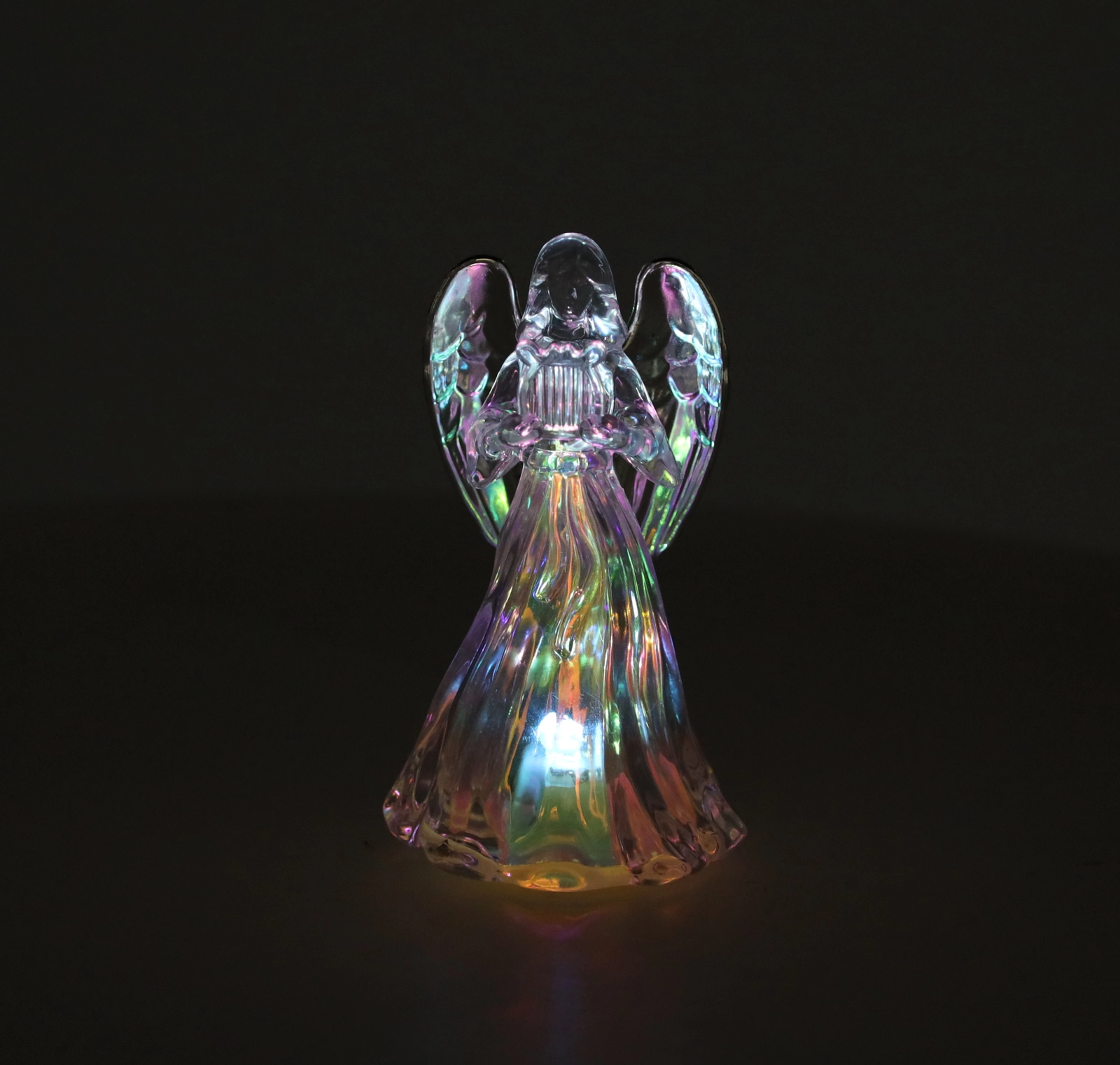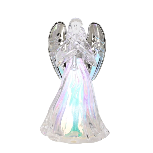 Grazie alle dimensioni compatte 7,5 × 12,5 cm, l'angelo è perfetto per tavola festiva, mensola e anche per la cameretta dei bambini. L'illuminazione alimentata da 3 batterie LR44 (incluse) consente un utilizzo immediato senza cavi. Il modello è disponibile in diverse varianti che si distinguono per i piccoli oggetti tenuti in mano dagli angeli.