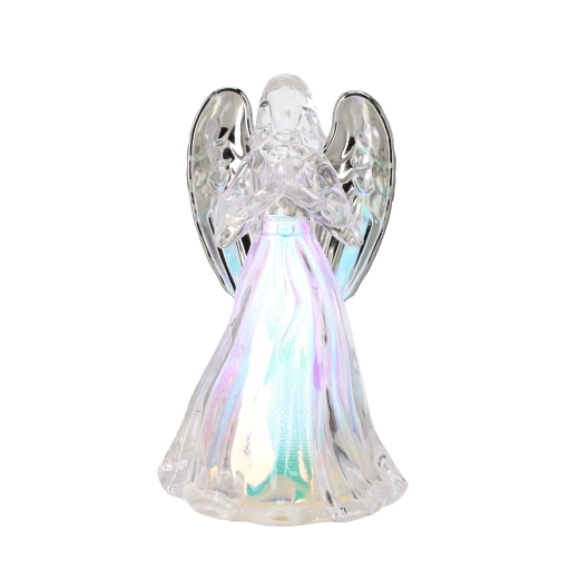 L'illuminazione LED emette una luce bianco freddo pura che enfatizza i dettagli dell'angelo e dona all'addobbo natalizio un'atmosfera calma ed elegante.