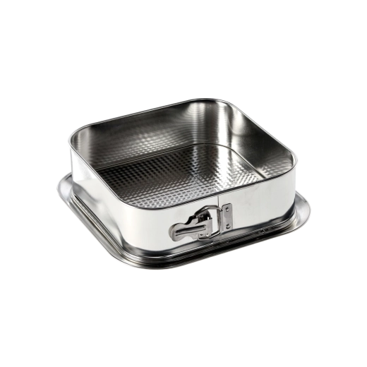 Pratica teglia quadrata da 24 × 24 cm, ideale per torte, cheesecake e crostate. Grazie al fondo removibile e alle pareti laterali con chiusura estrai facilmente il dessert finito senza danneggiarlo. Il fondo zigrinato favorisce una cottura uniforme e riduce al minimo l’aderenza, mentre la lamiera stagnata garantisce resistenza e lunga durata.