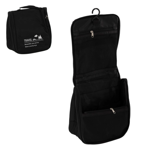 La pratica borsa cosmetica da viaggio mantiene il tuo kit ordinato in ogni spostamento. Grazie al gancio integrato la appendi facilmente in bagno, il materiale impermeabile protegge il contenuto da umidità e sporco e l'organizzazione interna studiata con tasche in rete e fasce elastiche assicura una sistemazione sicura anche dei liquidi senza rischio di fuoriuscite.