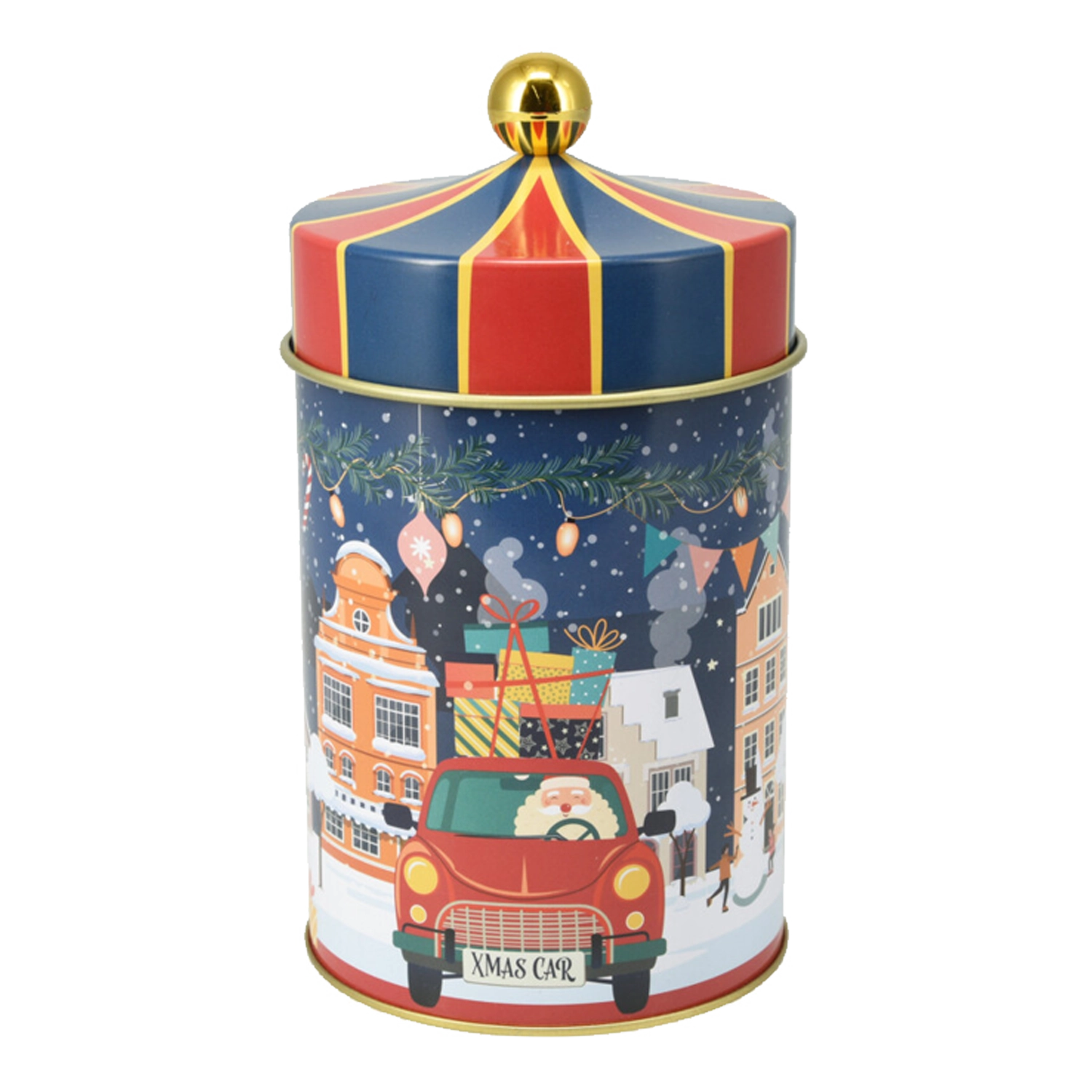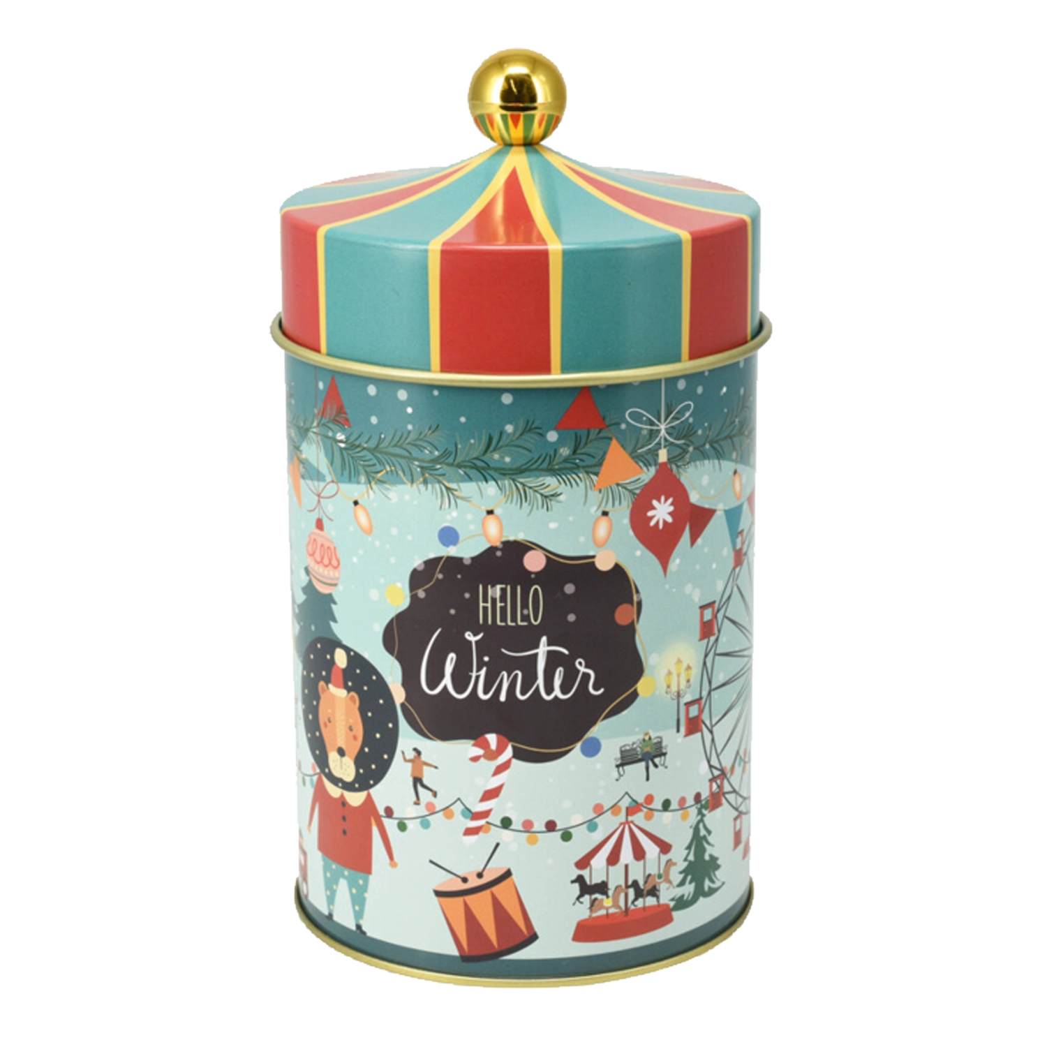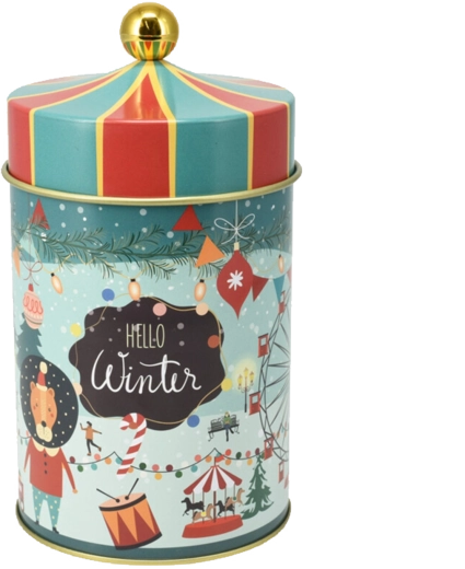 Questa scatola rotonda in metallo unisce praticità e un suggestivo design invernale. La struttura solida in metallo resistente e il coperchio ben calzante aiutano a proteggere le leccornie da umidità e aria, così rimangono croccanti e profumate più a lungo. Le dimensioni compatte ne facilitano il posizionamento su piano cucina, mensola o credenza.