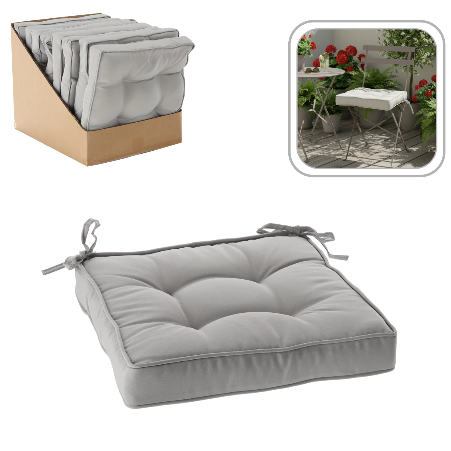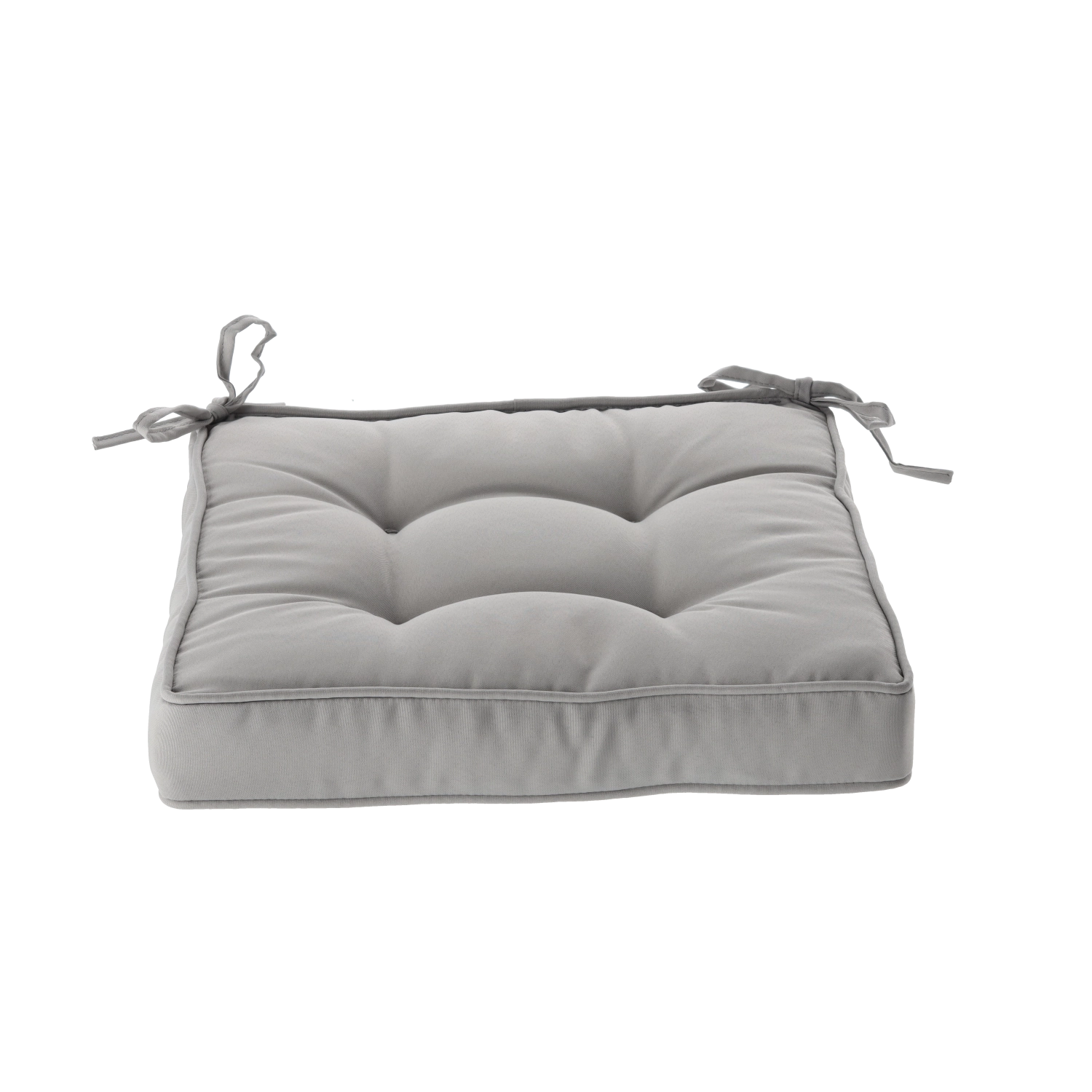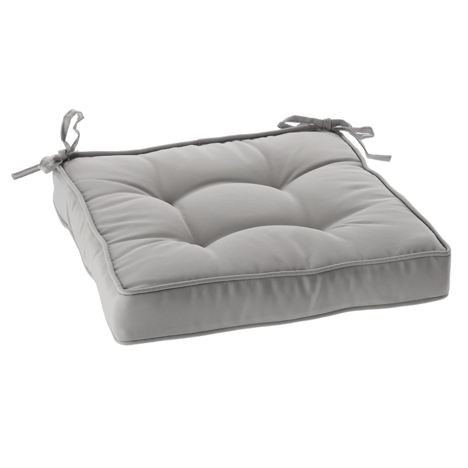 Il cuscino per sedia grigio chiaro 40 × 40 × 6 cm offre una seduta confortevole in casa e all’aperto. Grazie alla morbida imbottitura in poliestere e al rivestimento resistente, mantiene la forma, è piacevole al tatto e di facile manutenzione. Le asole per l’allacciatura assicurano stabilità sulla sedia e le impunture decorative donano un aspetto elegante a qualsiasi ambiente.