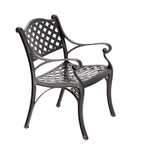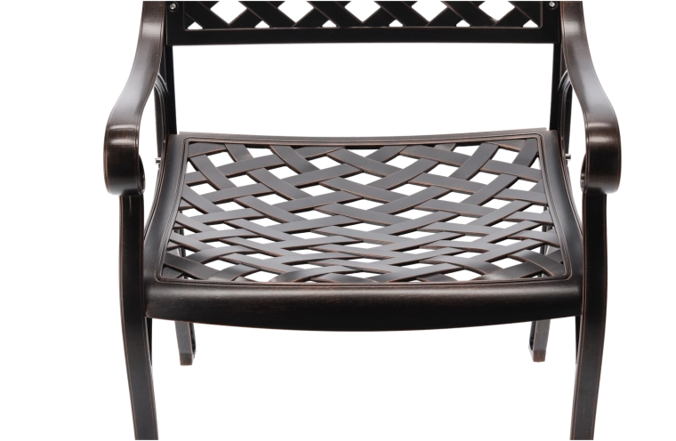 Elegante sedia da giardino MONDRICH nella tonalità bronzo antico, unisce l’estetica classica a una resistenza moderna. Realizzata con getti pieni di alluminio e rifinita con verniciatura a polvere per la protezione dagli agenti atmosferici. Grazie al basso peso, alla struttura stabile e ai comodi braccioli, è ideale per terrazzo, balcone, giardino e spazi commerciali.