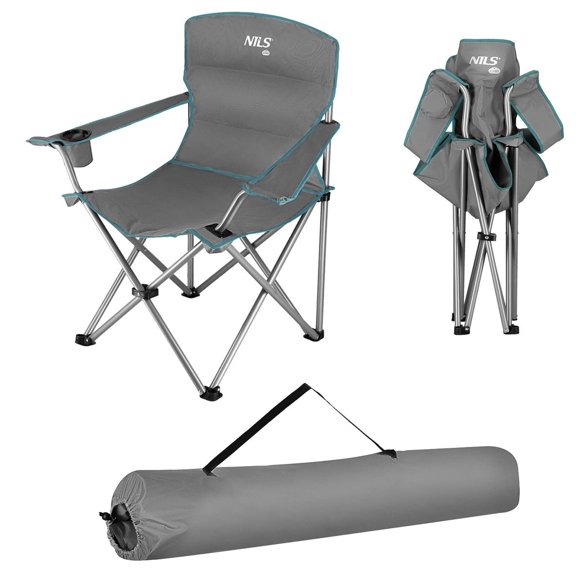 La comoda e resistente sedia da campeggio pieghevole NILS Camp è ideale per il lago, la pesca, i festival e il campeggio. Offre una robusta struttura in acciaio, tessuto resistente Oxford 600D, braccioli regolabili e portabicchiere integrato. Grazie alla portata di 130 kg e al rapido ripiegamento nella sacca per il trasporto è la scelta perfetta per ogni avventura outdoor.