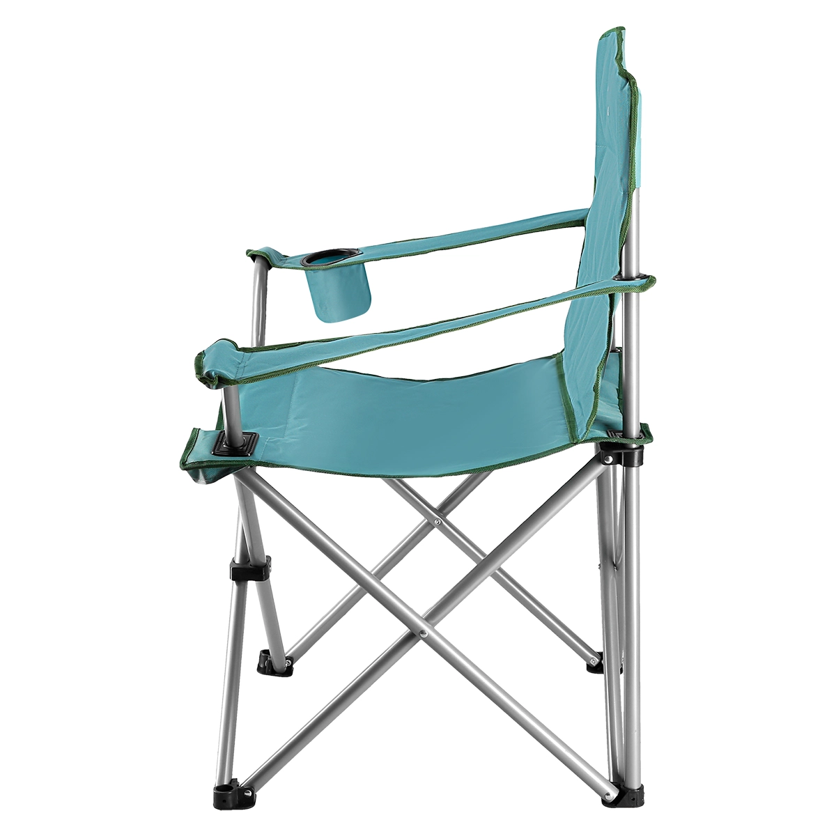 Sedia da campeggio pieghevole resistente e confortevole per la pesca, in riva all’acqua e ai festival. Offre una struttura in acciaio stabile, rivestimento Oxford 600D, braccioli regolabili e portabicchiere. Si ripiega facilmente in un sacco da trasporto con tracolla e regge fino a 130 kg.
