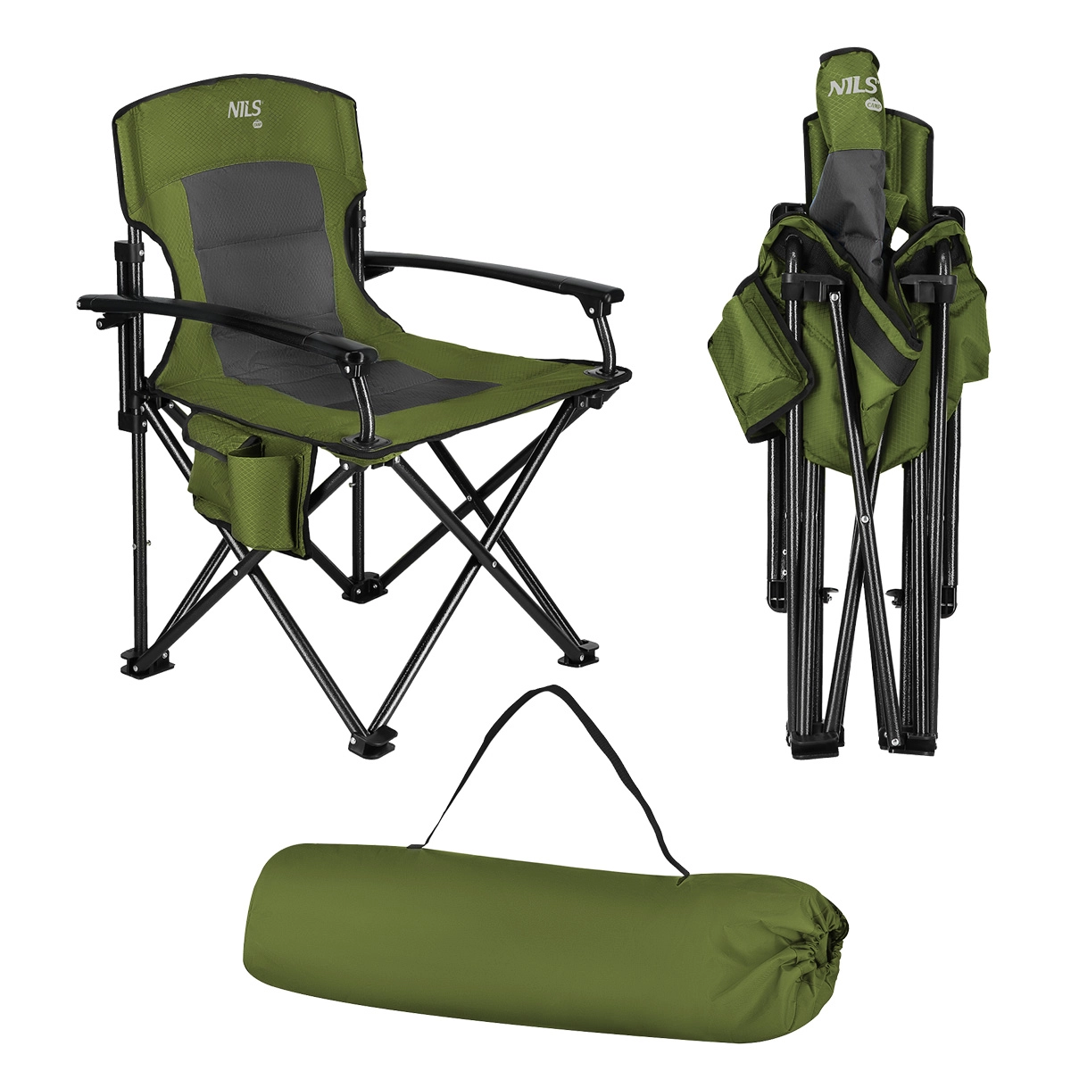 Goditi il comfort ovunque nella natura. La sedia pieghevole NILS Camp è rivestita in poliestere Oxford 600D a doppio strato con morbida imbottitura, così da offrire una seduta confortevole anche per periodi prolungati. I braccioli a piena dimensione facilitano sedersi e alzarsi e sul lato trovi un portabicchiere circolare e una tasca con patta per telefono, portafoglio e altri piccoli oggetti.