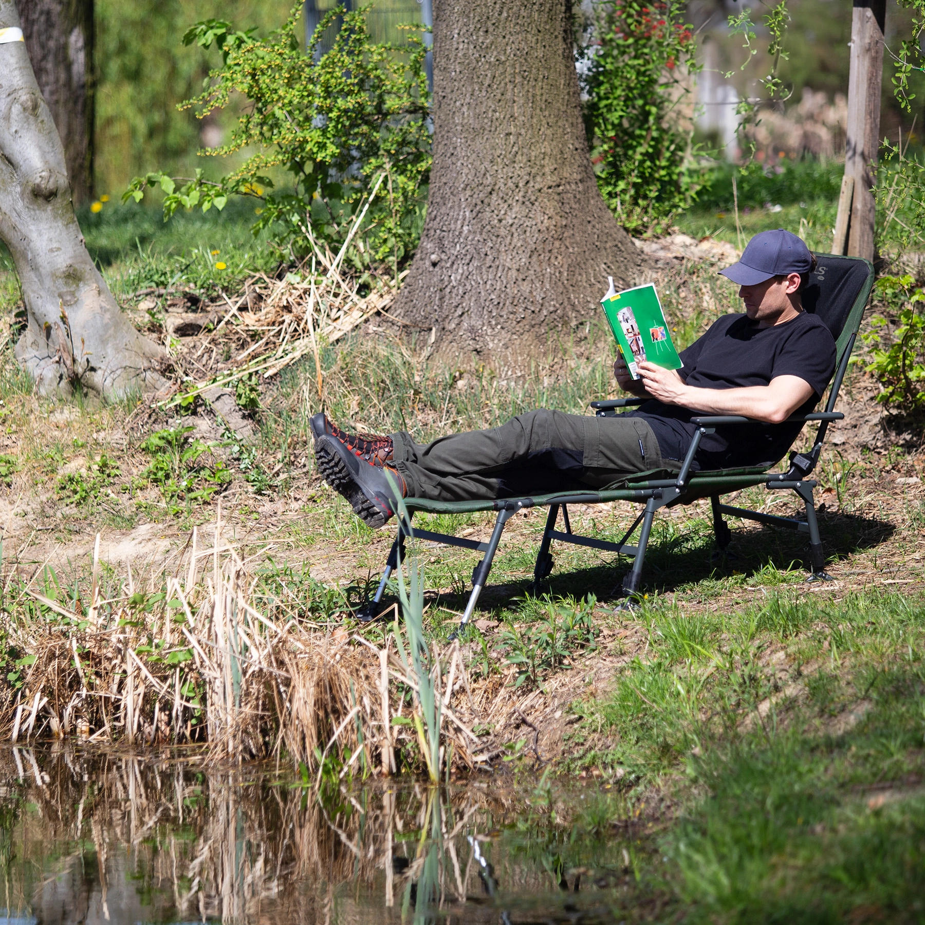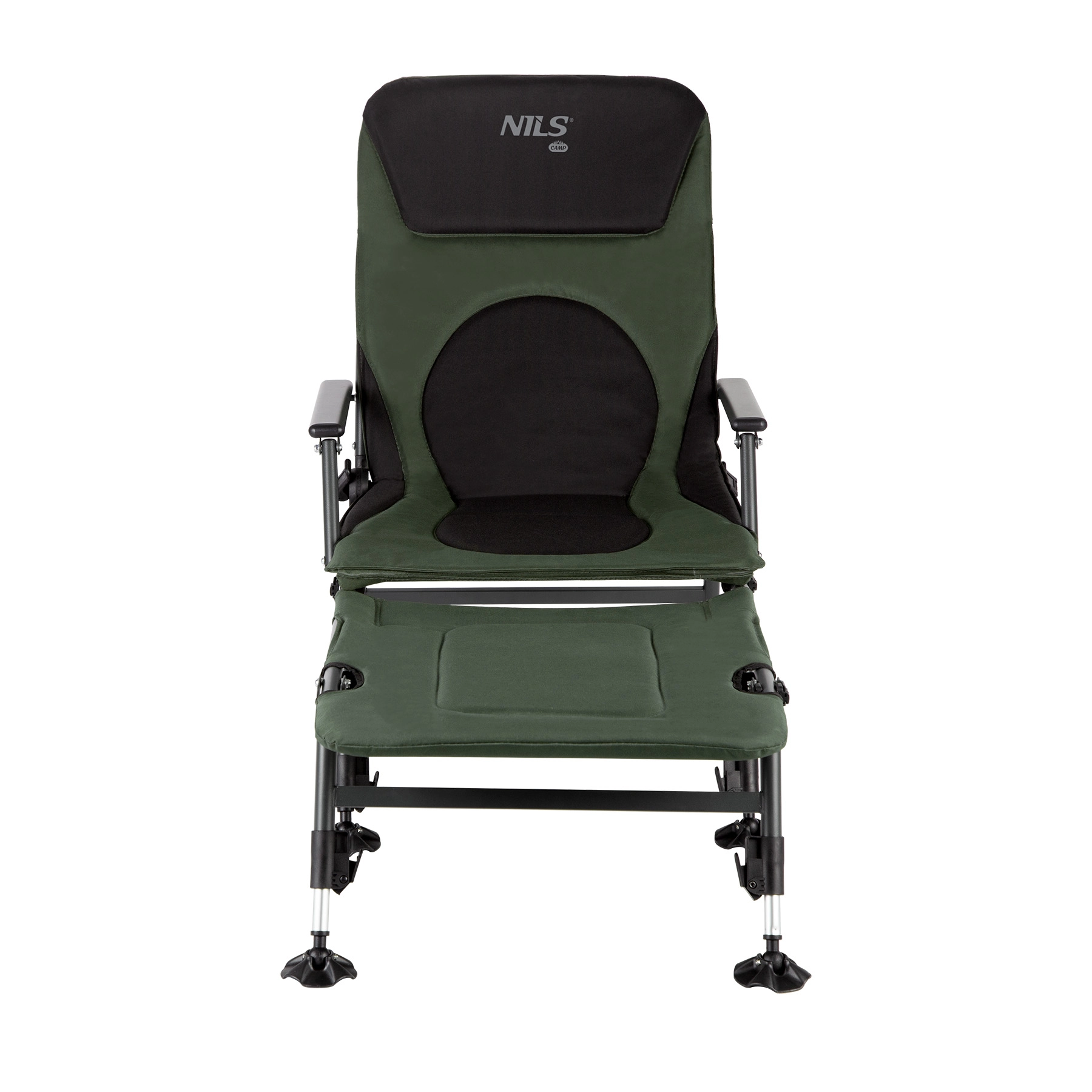 Goditi il massimo comfort in riva all’acqua con la sedia da pesca con poggiapiedi NILS CAMP NC1802. Struttura resistente, rivestimento imbottito in Oxford 600D e regolazione continua fino alla posizione relax garantiscono comodità su ogni terreno. Grazie alle gambe regolabili con piedini più larghi la sedia resta stabile anche su rive irregolari e il telaio in acciaio con portata fino a 180 kg assicura una lunga durata. Si piega e si trasporta facilmente, ideale per pesca, campeggio e relax nella natura.