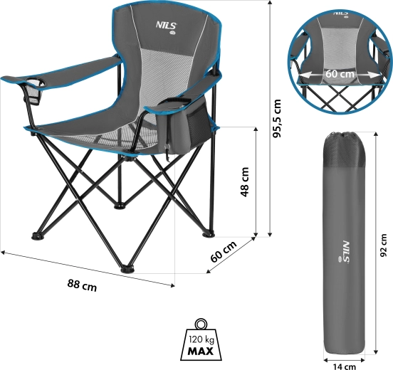 Goditi il comfort ovunque all’aperto con la sedia pieghevole NILS Camp NC3706. Il sedile ampio e confortevole con schienale ergonomico offre una seduta piacevole anche durante pause più lunghe. L’altezza di 48 cm facilita l’alzata e garantisce il giusto comfort accanto al fuoco, in riva all’acqua o ai festival.
