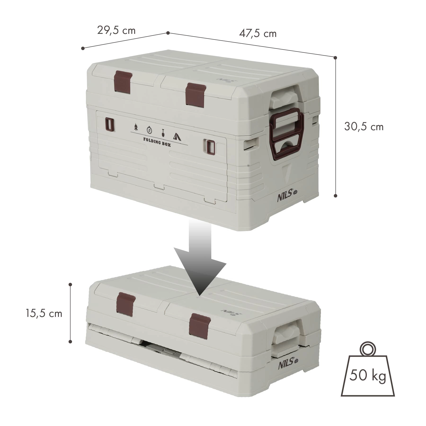 Box contenitore pieghevole con coperchio 42 l NILS Camp grigio