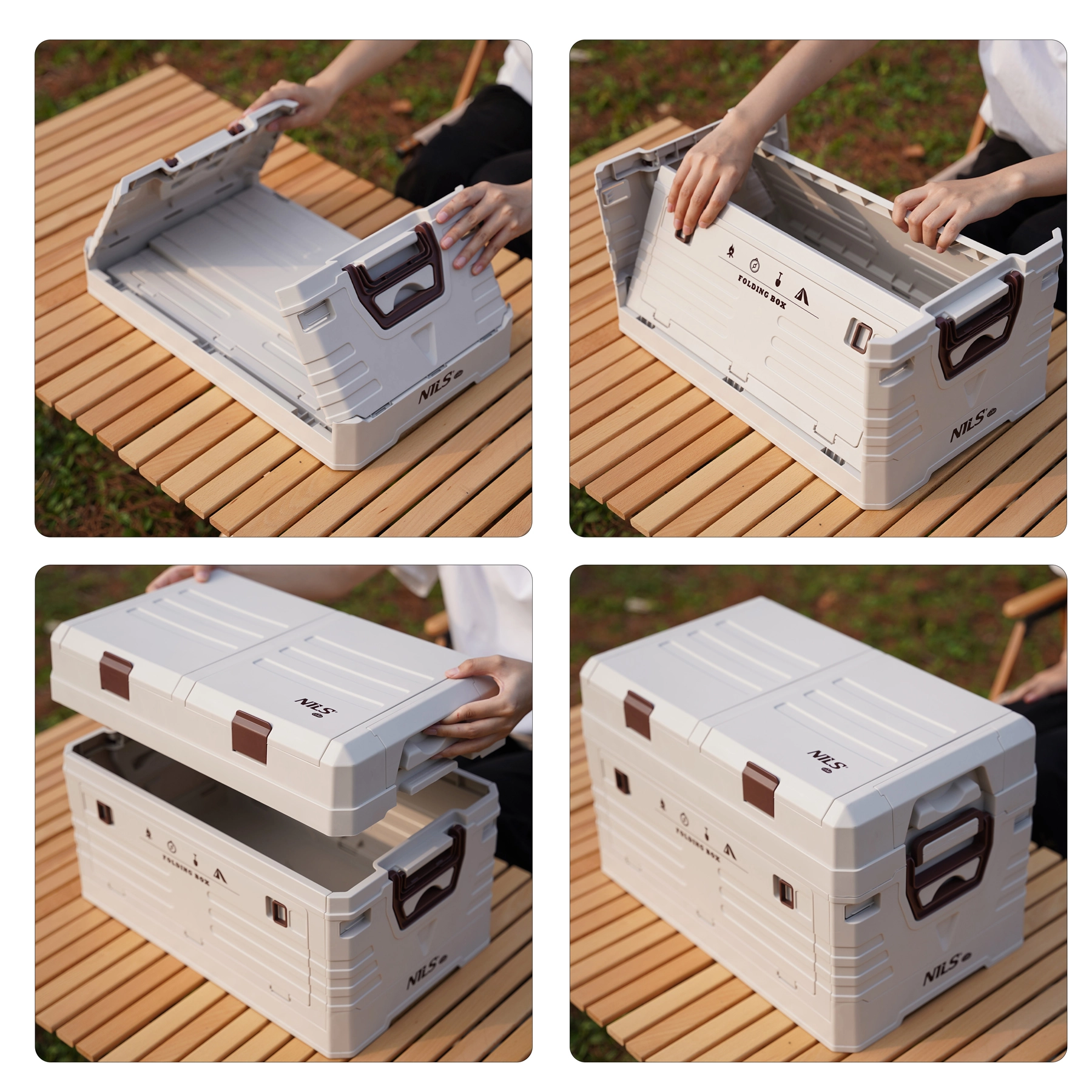 Pratico box pieghevole con coperchio e capacità di 42 l, ideale per casa, auto, garage e campeggio. Offre due vani nel coperchio per piccoli oggetti, struttura modulare impilabile, chiusure robuste e maniglie comode. Una volta piegato è alto solo 15,5 cm, quindi si ripone e si trasporta facilmente.