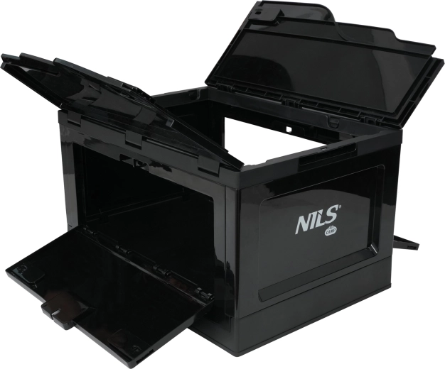 La pratica scatola pieghevole NILS CAMP offre un volume di 50 l, un coperchio integrato come piano di lavoro e una robusta struttura in plastica. In pochi secondi si ripiega fino a un'altezza di soli 10 cm, si trasporta facilmente grazie alle maniglie ergonomiche e si impila in sicurezza. Ideale per auto, garage, officina e per il campeggio.