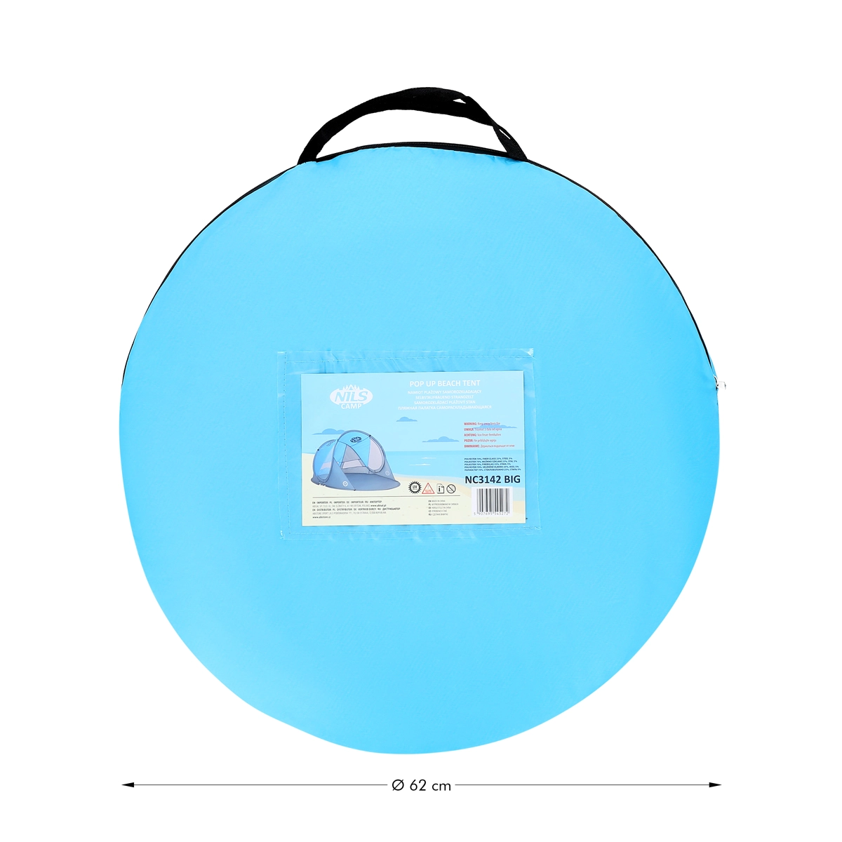 Goditi comfort e sicurezza in spiaggia o in piscina con la tenda autoportante NILS Camp NC3143 BIG. Offre apertura istantanea, protezione dai raggi UV fino al 96%, ombra e riparo dal vento e un comodo trasporto nella borsa rotonda. Grazie alle dimensioni di 200 × 120 × 93 cm è adatta sia ai bambini che agli adulti e il telo in poliestere resistente sopporta anche pioggerelle leggere.