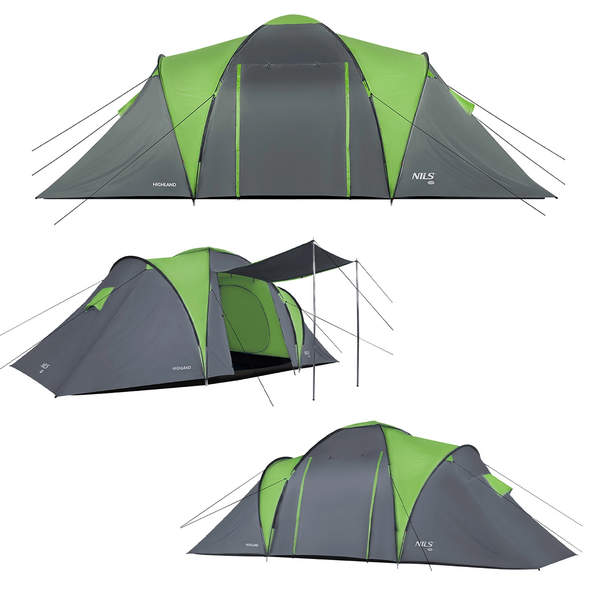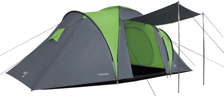 Godetevi comfort e sicurezza durante il campeggio con la tenda familiare NILS Camp Highland. La struttura a doppio strato, i materiali di qualità e una colonna d’acqua di 4000 mm H2O sia sul doppio tetto che sul pavimento proteggono da pioggia e vento. Il tessuto resistente ai raggi UV e il trattamento autoestinguente aumentano la sicurezza e la durata della tenda. Grazie alle zanzariere, alle aperture di ventilazione e alle camere traspiranti, all’interno si mantiene un clima piacevole senza condensa.