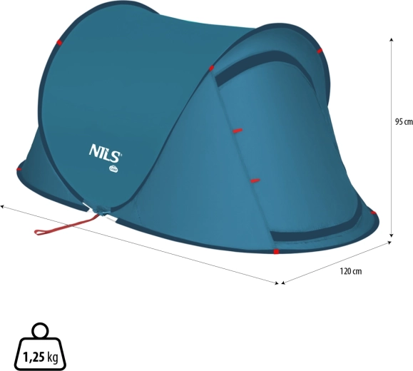 Le generose dimensioni di 220 × 120 × 95 cm sono comode per una persona o una coppia. Il fondo impermeabile impedisce all’umidità di penetrare da sabbia o erba bagnata. La stabilità è assicurata da picchetti in acciaio e tiranti, così la tenda resiste affidabilmente alle raffiche di vento. Da chiusa misura solo 68 cm di diametro e 5 cm di altezza, quindi si trasporta facilmente nella borsa in dotazione.