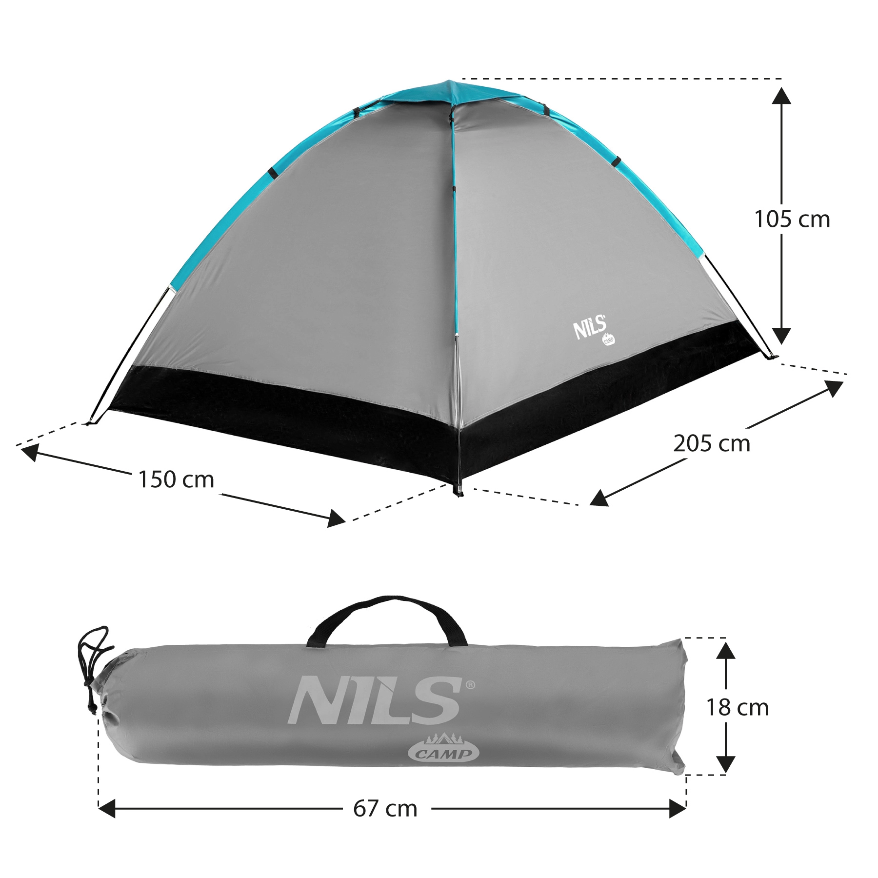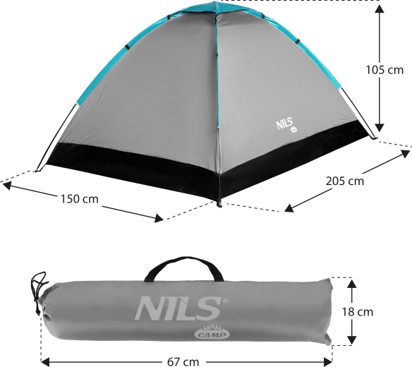 Tenda da campeggio per 2 persone NILS CAMP NC3021 grigia