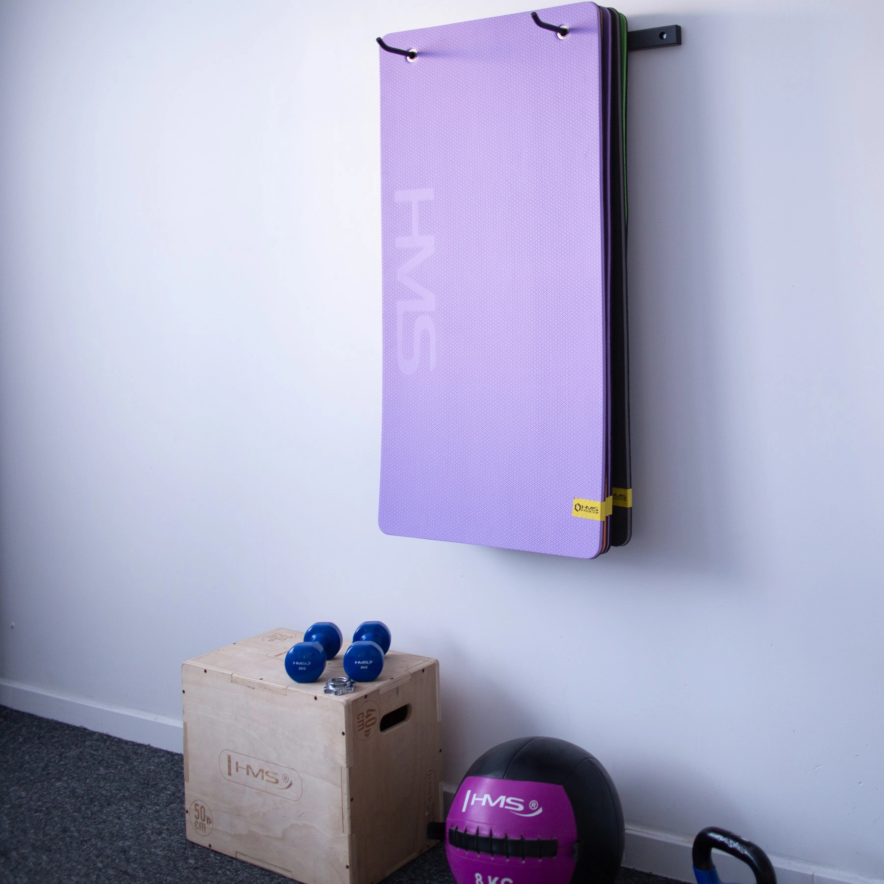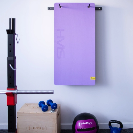 Il supporto da parete per tappetini HMS STR30 mantiene i tappetini sollevati dal pavimento, risparmia spazio e garantisce ordine in palestra, studio o ufficio. La robusta struttura in acciaio e l’interasse studiato dei ganci (39–62 cm) facilitano l’appendimento di vari tipi di tappetini con occhielli.