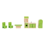 Questo set cucina, curato nei dettagli, per casette offre tutto ciò di cui i piccoli cuochi hanno bisogno: lavello, fornello, frigorifero, tavolo e due seggioline in una piacevole combinazione di legno naturale e vivaci accenti verdi. Grazie al legno massello, i mobili sono stabili e pronti per il gioco quotidiano.