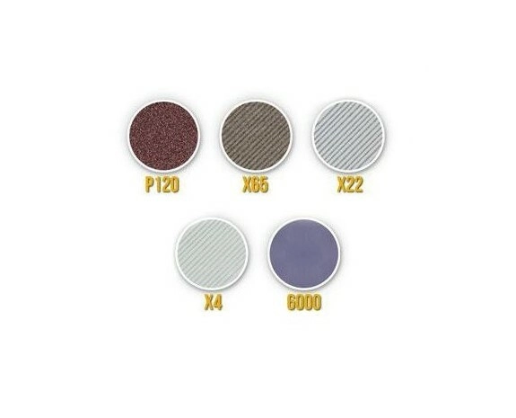 - Ampia copertura delle grane: P120 per un rapido ripristino del filo, X65 e X22 per la modellatura, X4 per la prelucidatura, P6000 per la lucidatura finale.