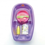 Disponibile in due varianti di colore, in modo che i bambini possano scegliere in base alle proprie preferenze. Le dimensioni della vaschetta in plastica sono 40 x 9,5 cm, ideali per bambole di varie dimensioni. È un regalo perfetto per ogni piccola che ama giocare a fare la mamma.