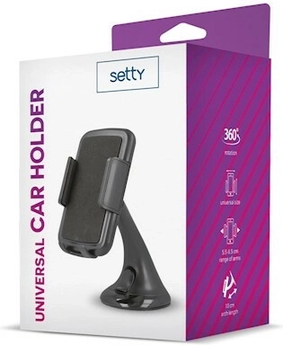 SETTY U16 è un supporto auto pratico e affidabile, progettato per la maggior parte degli smartphone e dei navigatori GPS. Grazie alla ventosa potente aderisce saldamente al vetro e lo snodo con rotazione a 360° consente un passaggio rapido tra orientamento verticale e orizzontale.