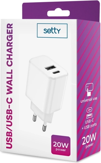 Caricatore da rete Setty 20 W con USB‑C e USB
