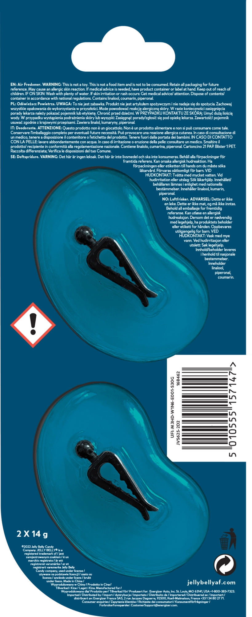 Rinfresca il tuo spazio con l’iconica fragranza ispirata alle leggendarie gelatine JELLY BELLY. La variante Blueberry conquista con dolci note di mirtillo e un leggero tocco di acidità – ideale per automobilisti e amanti dei profumi freschi in casa o in ufficio.