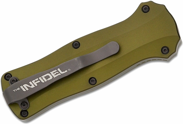 Compatto coltello automatico Benchmade Mini Infidel Woodland Green in edizione limitata, ideale per il porto quotidiano (EDC). Offre una lama in acciaio inossidabile CPM-S30V con finitura Stonewash, affidabile apertura a pulsante e sicurezza garantita dal blocco Slide Lock. Il manico in alluminio leggero e resistente nella tonalità Woodland Green è completato da una pratica clip tascabile.